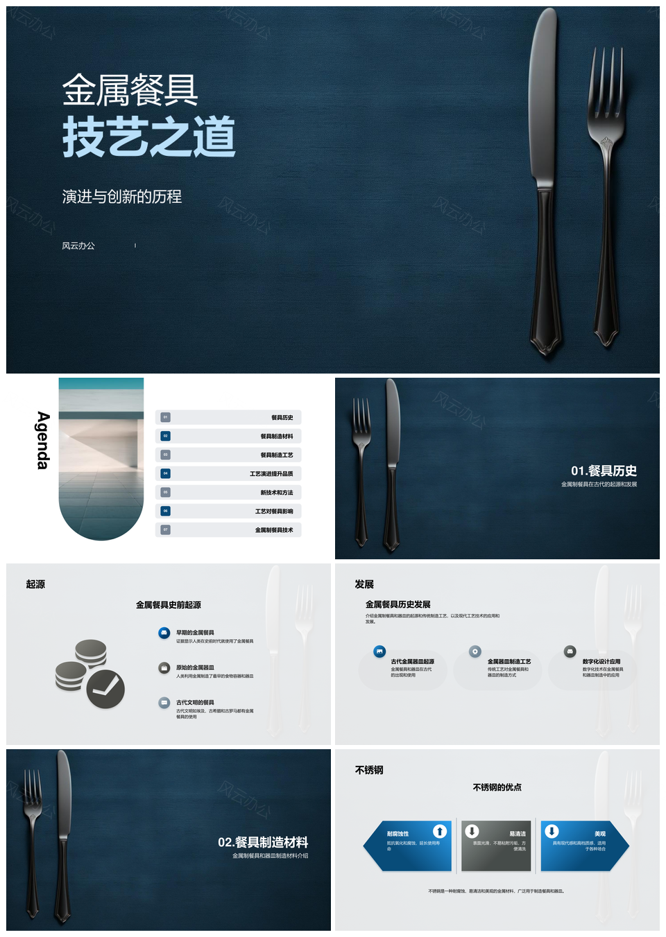 风云办公提供的金属餐具器皿传统制造工艺演进PPT模板,下载格式为pptx,一共33页,作品中文字及图均可以修改和编辑,图片更改请在作品中右键图片并更换,文字修改请直接点击文字进行修改。