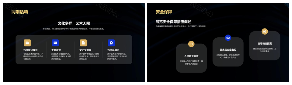 这是一张蓝金色简约高级国际艺术展盛宴PPT模板,包含蓝金色、简约、高级、国际、艺术展、盛宴等主题内容,也可用作蓝金色简约高级国际、蓝金色国际艺术展盛宴、简约高级国际艺术展、国际艺术展盛宴、蓝金色简约高级、简约高级国际、高级国际艺术展、蓝金色国际艺术展、蓝金色简约、高级国际、国际艺术展、艺术展盛宴、蓝金色高级、简约国际、蓝金色国际等PPT场景使用。