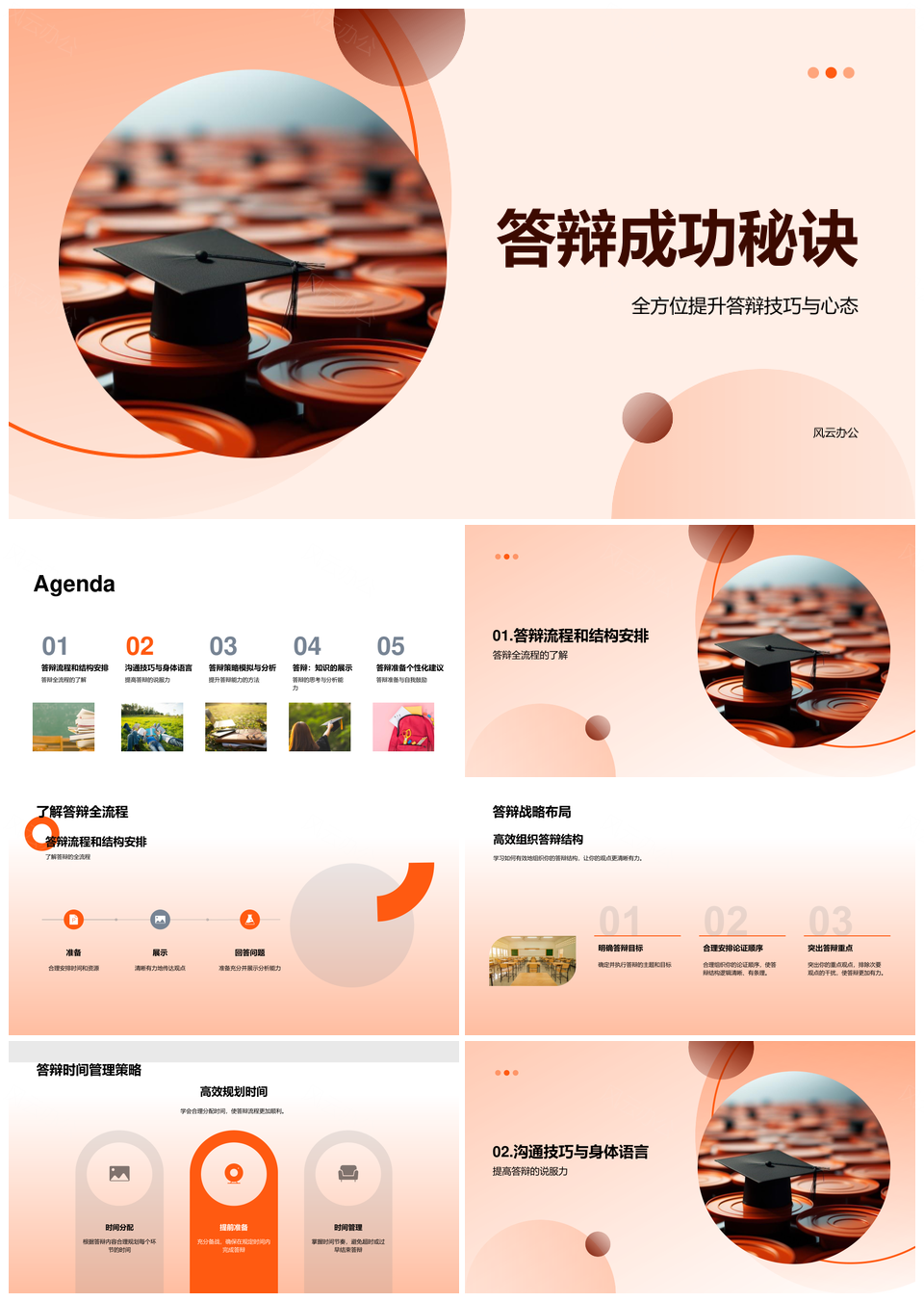 风云办公提供的答辩成功秘诀自信备战时间管理真谛PPT模板,下载格式为pptx,一共23页,作品中文字及图均可以修改和编辑,图片更改请在作品中右键图片并更换,文字修改请直接点击文字进行修改。