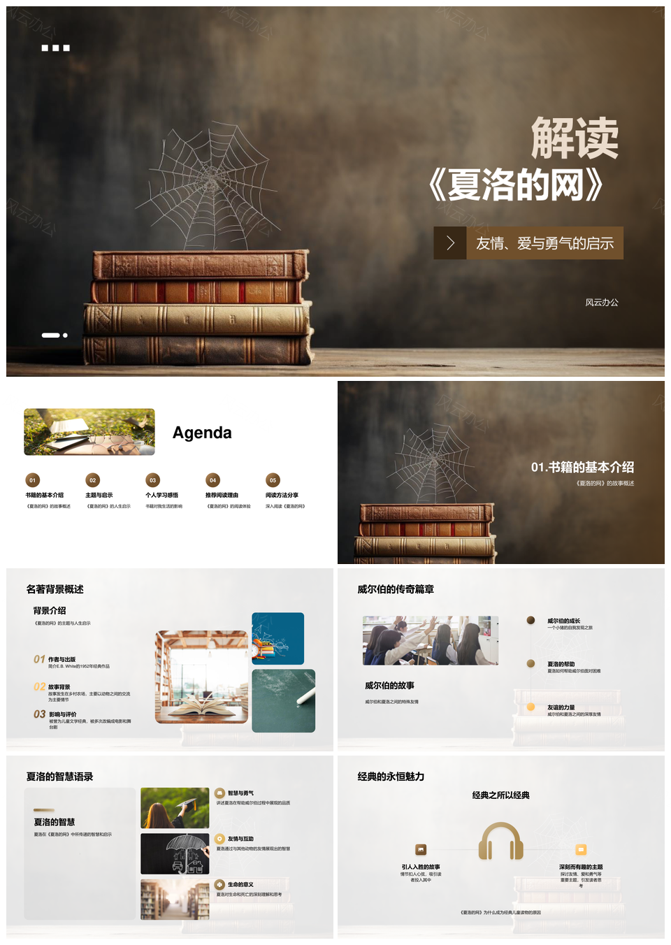 风云办公提供的夏洛与威尔伯友情勇气爱启示人生PPT模板,下载格式为pptx,一共33页,作品中文字及图均可以修改和编辑,图片更改请在作品中右键图片并更换,文字修改请直接点击文字进行修改。
