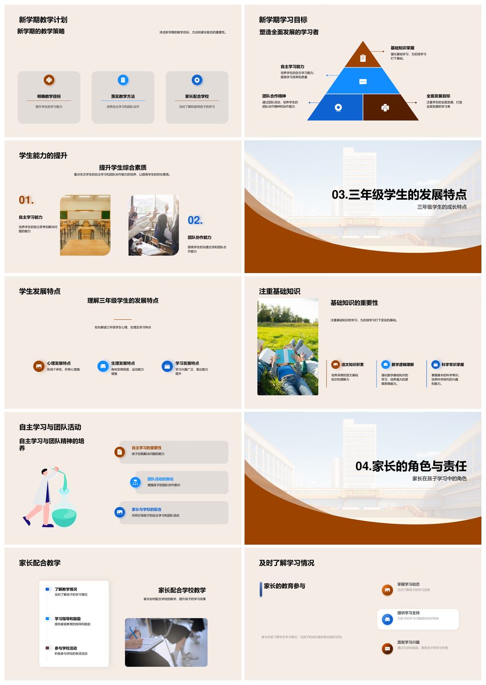 风云办公提供的三年级新学期夯基础教学启新程PPT模板,下载格式为pptx,一共23页,作品中文字及图均可以修改和编辑,图片更改请在作品中右键图片并更换,文字修改请直接点击文字进行修改。