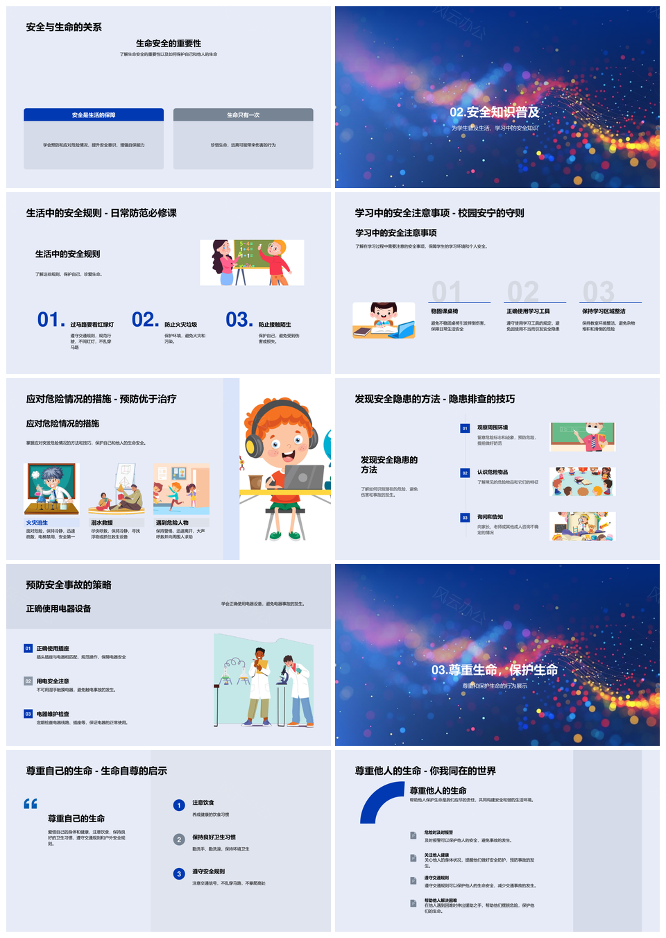 风云办公提供的生命安全教育珍视安全知识防范应对PPT模板,下载格式为pptx,一共33页,作品中文字及图均可以修改和编辑,图片更改请在作品中右键图片并更换,文字修改请直接点击文字进行修改。