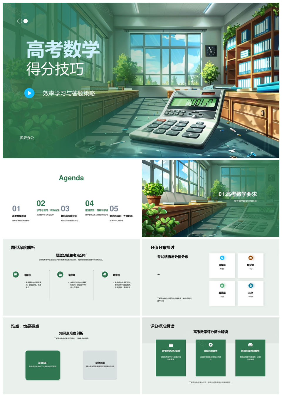 风云办公提供的高考数学高效得分策略题型分难解析PPT模板,下载格式为pptx,一共28页,作品中文字及图均可以修改和编辑,图片更改请在作品中右键图片并更换,文字修改请直接点击文字进行修改。