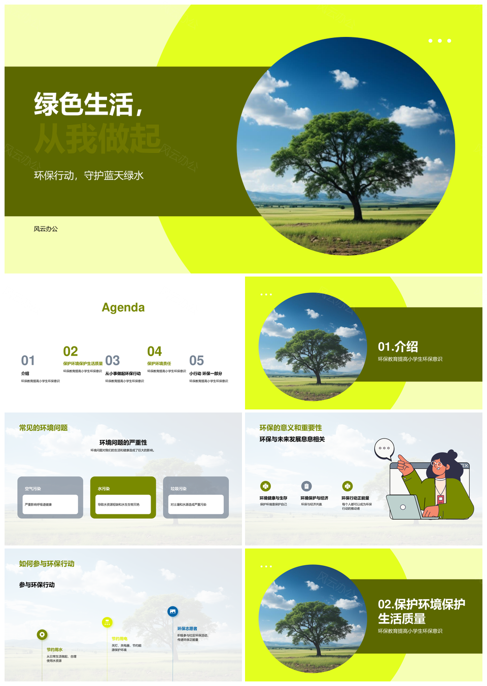风云办公提供的小学生环保行动守护绿水青山PPT模板,下载格式为pptx,一共30页,作品中文字及图均可以修改和编辑,图片更改请在作品中右键图片并更换,文字修改请直接点击文字进行修改。