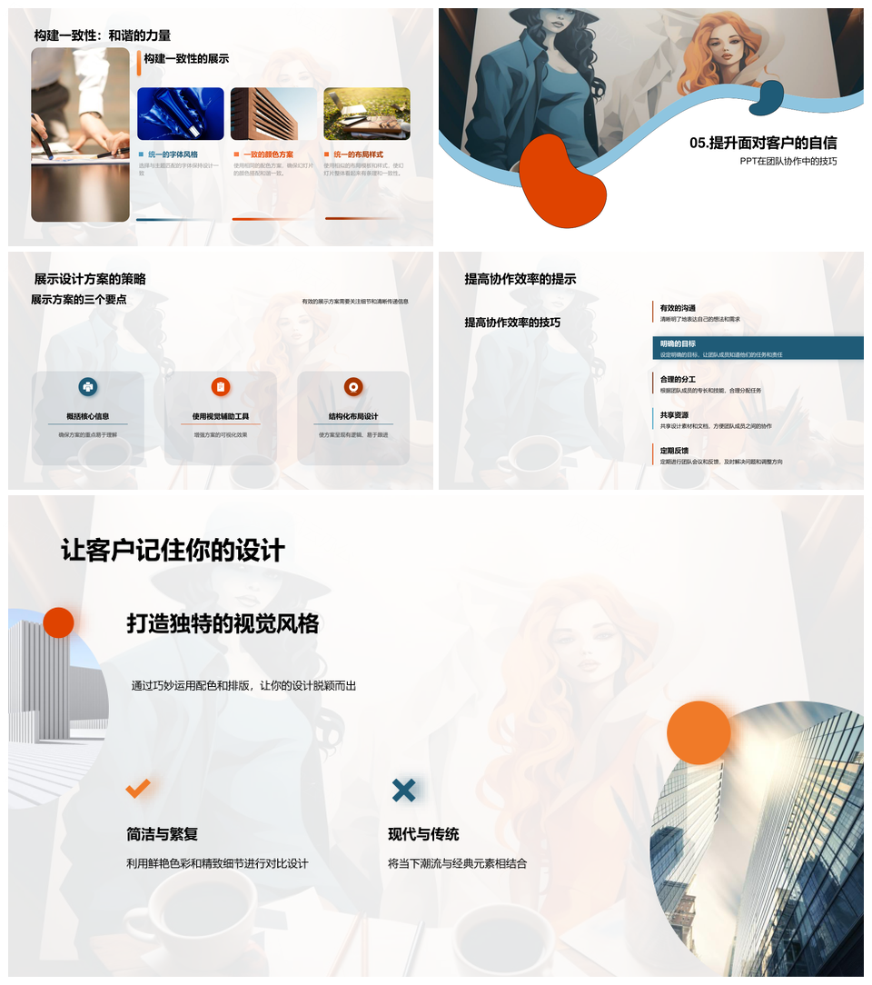 风云办公提供的时尚设计师视觉方案协作配色技巧PPT模板,下载格式为pptx,一共23页,作品中文字及图均可以修改和编辑,图片更改请在作品中右键图片并更换,文字修改请直接点击文字进行修改。
