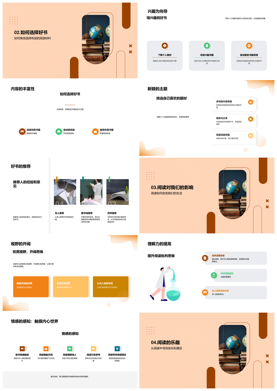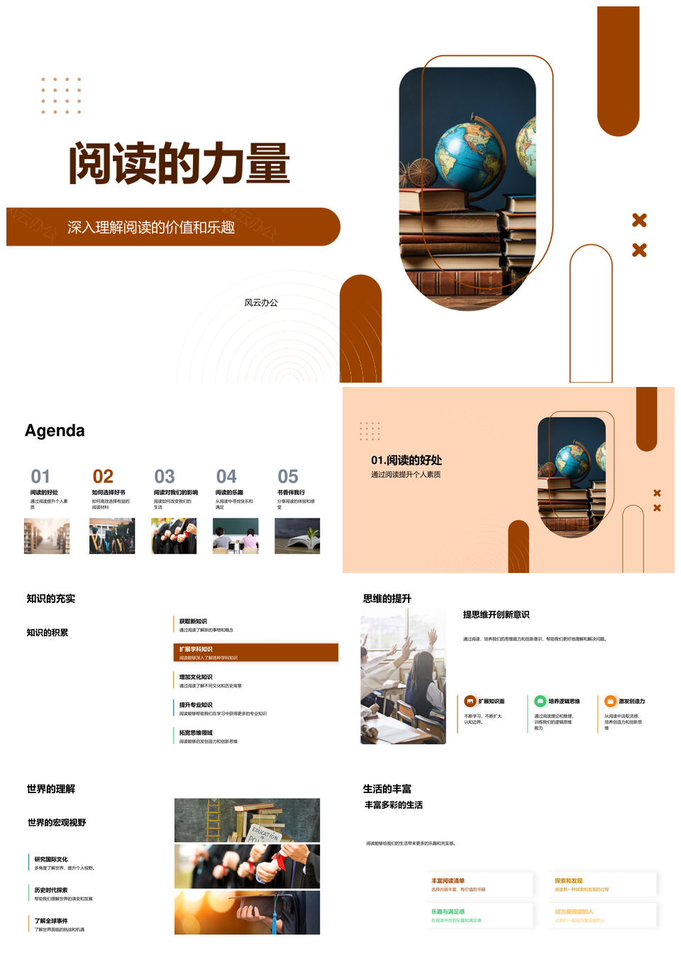 这是一张阅读启思储智悦读世界PPT模板,包含阅读、启思、储智、悦读、世界等主题内容,也可用作阅读启思储智悦读、启思储智悦读世界、阅读启思储智、启思储智悦读、储智悦读世界、阅读启思、启思储智、储智悦读、悦读世界、阅读世界、启思悦读、启思世界、阅读悦读、悦读储智、悦读启思等PPT场景使用。 风云办公提供的阅读启思储智悦读世界PPT模板,下载格式为pptx,一共25页,作品中文字及图均可以修改和编辑,图片更改请在作品中右键图片并更换,文字修改请直接点击文字进行修改。