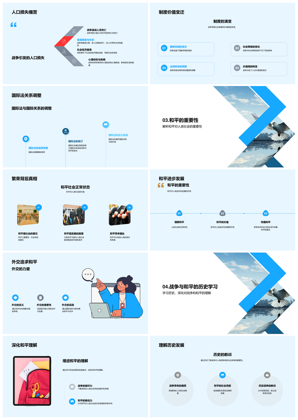 风云办公提供的战争历史经验启示和平理念追求PPT模板,下载格式为pptx,一共23页,作品中文字及图均可以修改和编辑,图片更改请在作品中右键图片并更换,文字修改请直接点击文字进行修改。
