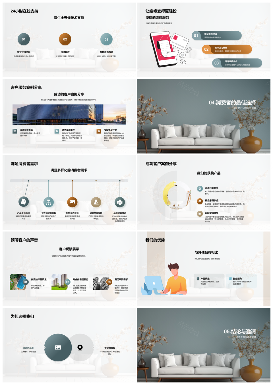 这是一张优选家居展示会现代设计品质保障售后无忧PPT模板,包含优选家居、展示会、现代设计、品质保障、售后无忧等主题内容,也可用作优选家居展示会现代设计、展示会现代设计品质保障、现代设计品质保障售后无忧、优选家居品质保障售后无忧、优选家居现代设计、展示会现代设计、现代设计品质保障、设计品质保障售后无忧、优选家居设计、家居现代设计、优选家居、家居展示会、现代设计、品质保障售后无忧、设计品质保障等PPT场景使用。 风云办公提供的优选家居展示会现代设计品质保障售后无忧PPT模板,下载格式为pptx,一共33页,作品中文字及图均可以修改和编辑,图片更改请在作品中右键图片并更换,文字修改请直接点击文字进行修改。