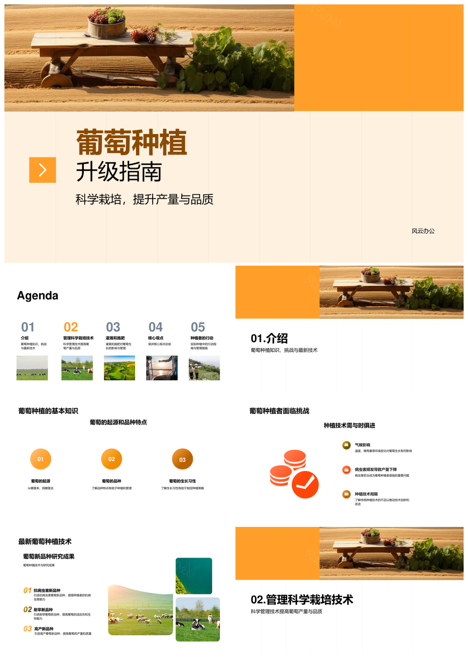 这是一张葡萄种植农科葡农应对挑战新技增产提质PPT模板,包含葡萄、种植、农科、葡农、挑战、新技、增产、提质等主题内容,也可用作葡萄种植应对挑战新技、葡萄种植农科葡农应对、葡农应对挑战新技增产、应对挑战新技增产提质、农科葡农应对挑战新技、新技增产提质葡萄种植、葡农新技增产提质应对、农科新技增产提质葡农、葡萄种植应对挑战增产、应对挑战新技农科葡农、葡萄种植农科新技增产、葡农应对挑战增产提质、农科应对挑战新技增产、葡萄种植挑战新技增产、农科葡农新技提质增产等PPT场景使用。 风云办公提供的葡萄种植农科葡农应对挑战新技增产提质PPT模板,下载格式为pptx,一共23页,作品中文字及图均可以修改和编辑,图片更改请在作品中右键图片并更换,文字修改请直接点击文字进行修改。