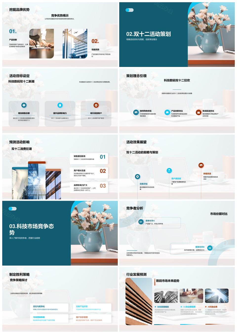 风云办公提供的双十二科技数码盛宴前瞻竞析PPT模板,下载格式为pptx,一共31页,作品中文字及图均可以修改和编辑,图片更改请在作品中右键图片并更换,文字修改请直接点击文字进行修改。