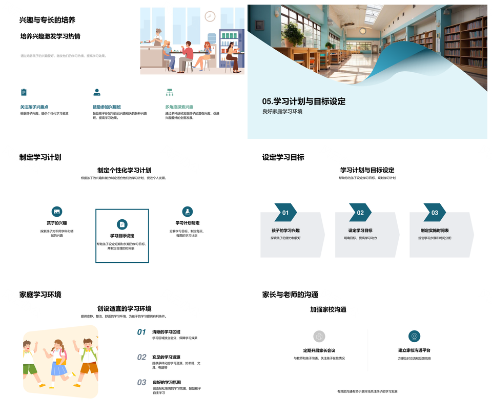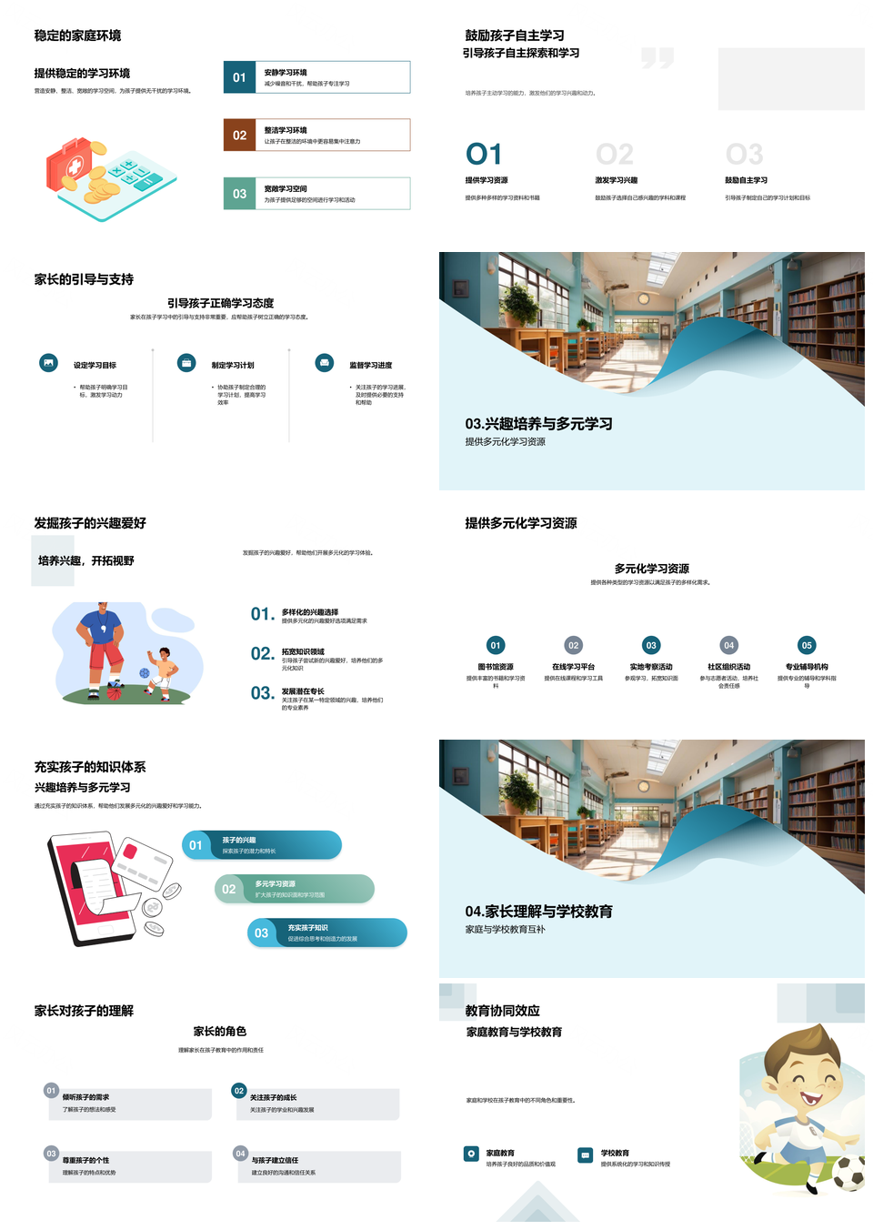 风云办公提供的初中家校共育生涯规划与自主学习指导PPT模板,下载格式为pptx,一共24页,作品中文字及图均可以修改和编辑,图片更改请在作品中右键图片并更换,文字修改请直接点击文字进行修改。
