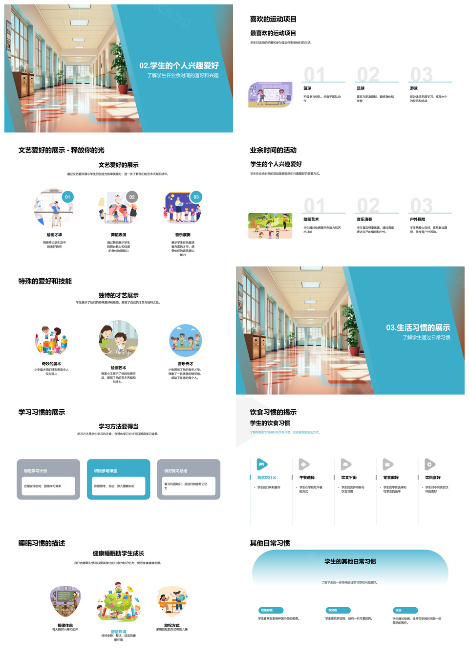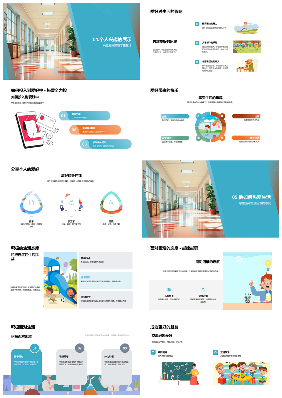 风云办公提供的学生校园家庭假日兴趣习惯生活全景PPT模板,下载格式为pptx,一共28页,作品中文字及图均可以修改和编辑,图片更改请在作品中右键图片并更换,文字修改请直接点击文字进行修改。