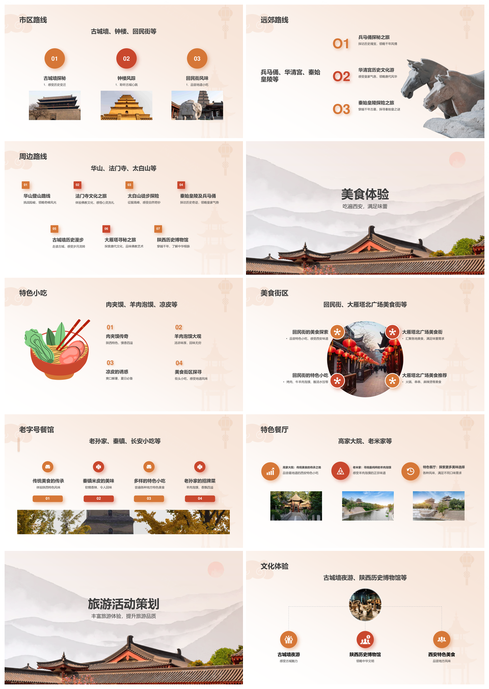 西安美食文化历史遗迹视觉味蕾一站式品质旅游攻略PPT模板