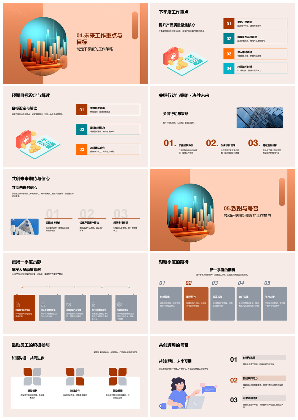 季度业绩业务指标未来战略规划产品服务员工使命PPT模板