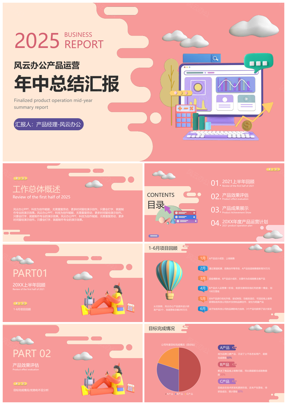 20253D风格元素产品运营年中总结汇报PPT模板