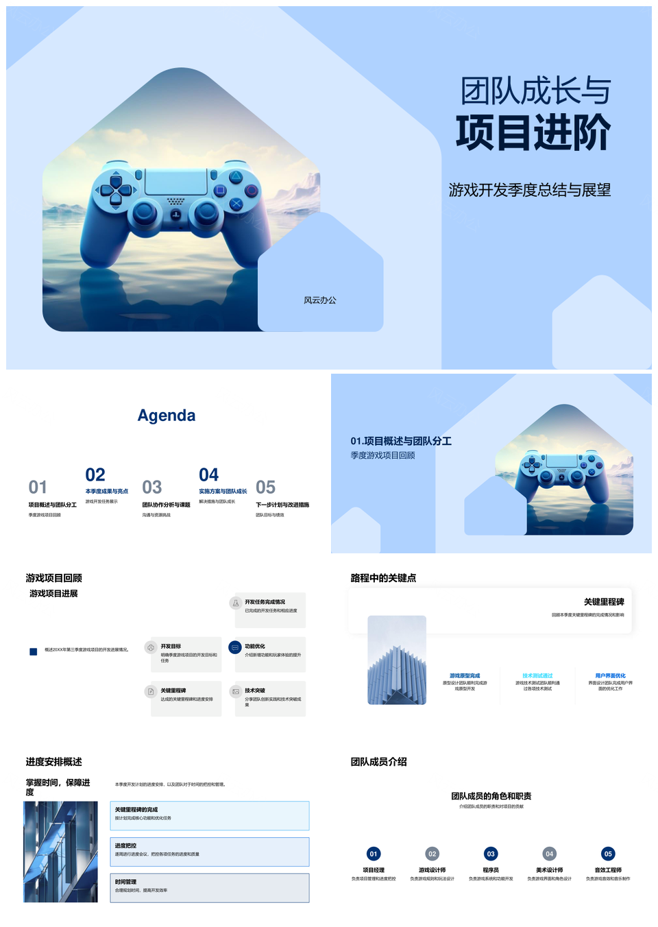 游戏开发团队成长项目进阶季度关键里程碑PPT模板推荐