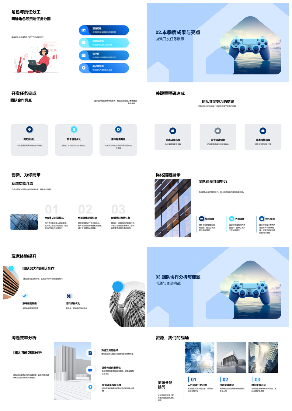 游戏开发团队协作技术时间难题优化季度报告PPT模板