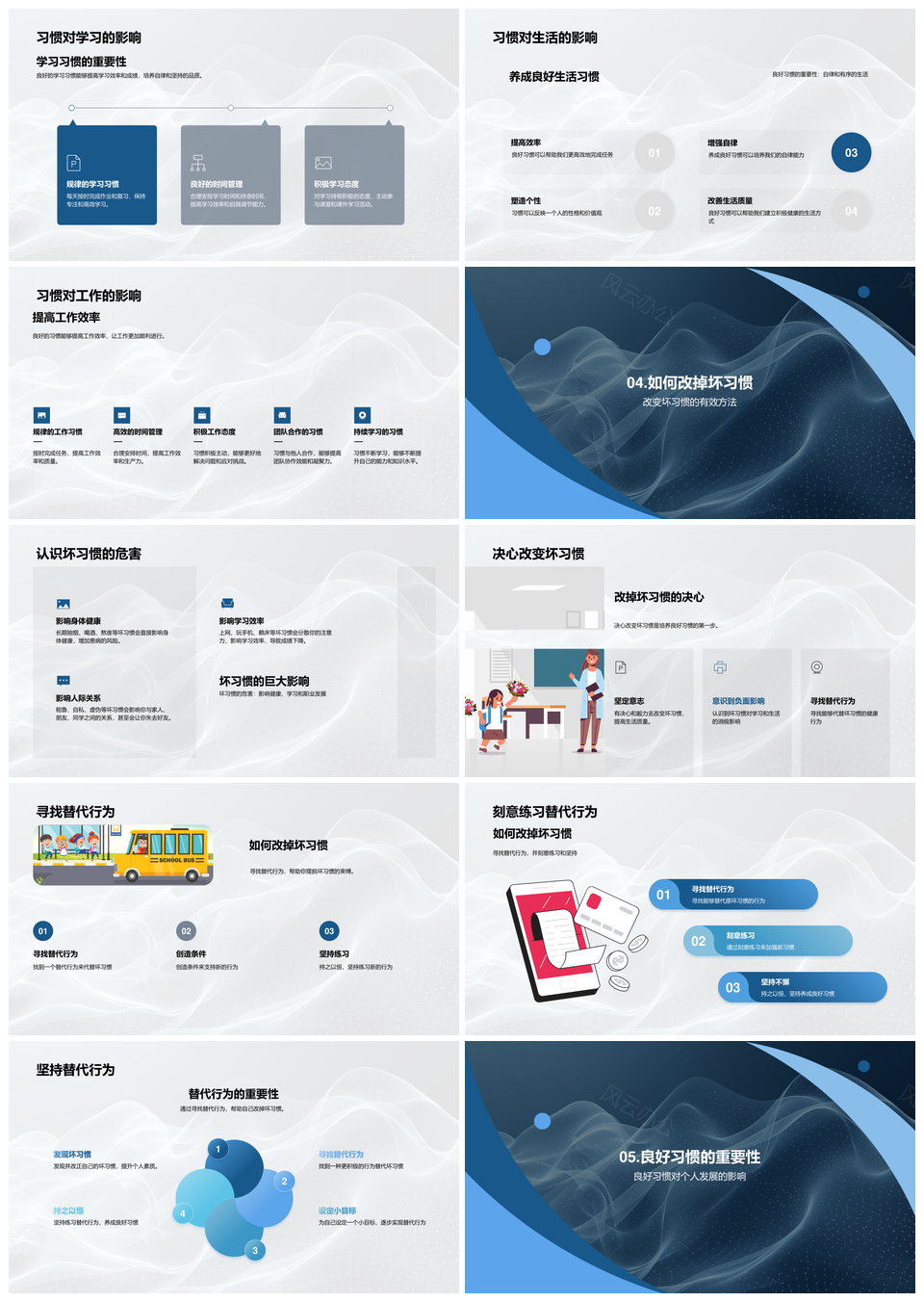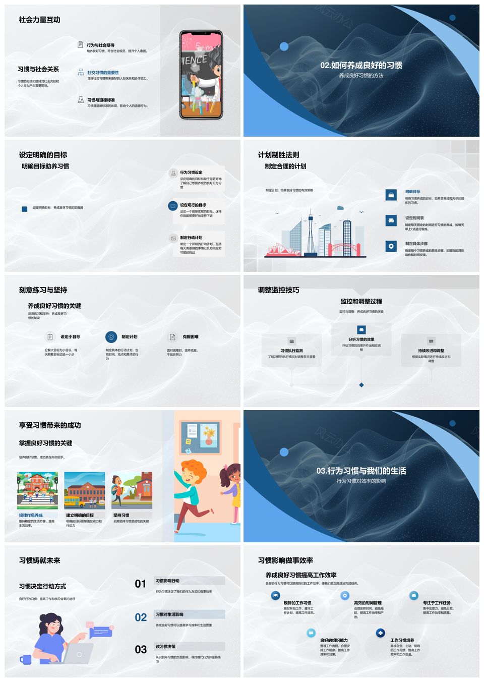 这是一张良好行为学习生活习惯定义影响养成塑造人生PPT模板,包含良好行为、学习、生活习惯、定义、影响、养成、塑造、人生等主题内容,也可用作良好行为学习生活习惯、良好行为习惯养成塑造、行为学习生活习惯定义、学习生活习惯定义影响、生活习惯定义影响养成、习惯定义影响养成塑造、定义影响养成塑造人生、良好学习生活习惯养成、良好行为习惯影响塑造、行为习惯养成塑造人生、学习习惯养成塑造人生、良好习惯定义影响养成、习惯养成塑造人生、行为习惯定义影响、良好行为学习生活等PPT场景使用。 风云办公提供的良好行为学习生活习惯定义影响养成塑造人生PPT模板,下载格式为pptx,一共33页,作品中文字及图均可以修改和编辑,图片更改请在作品中右键图片并更换,文字修改请直接点击文字进行修改。