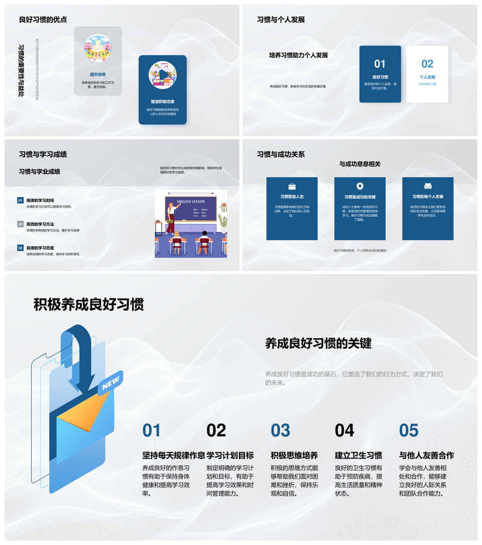 良好行为学习生活习惯定义影响养成塑造人生PPT模板推荐