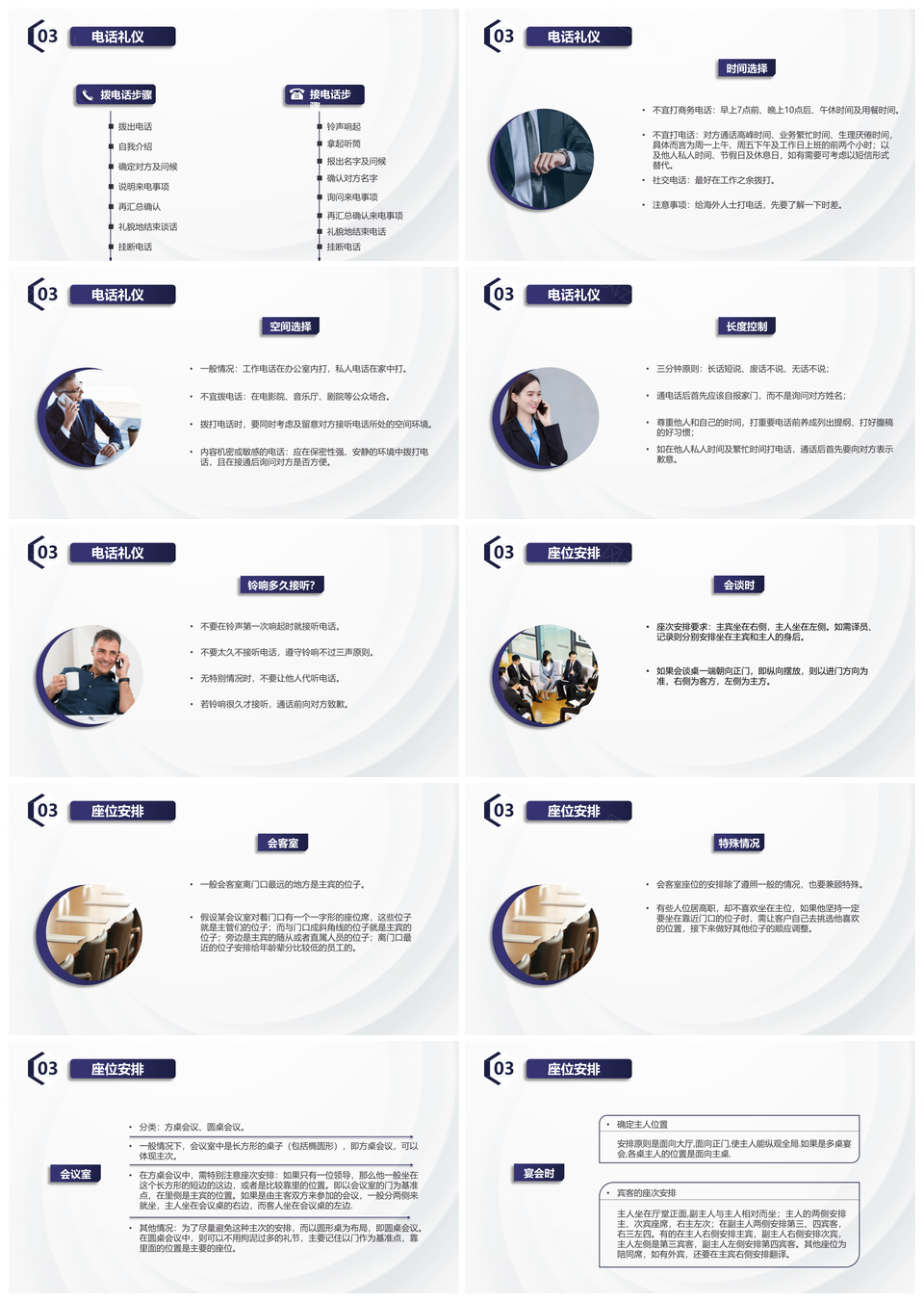 蓝色简约商务会议服务礼仪培训动态PPT模板