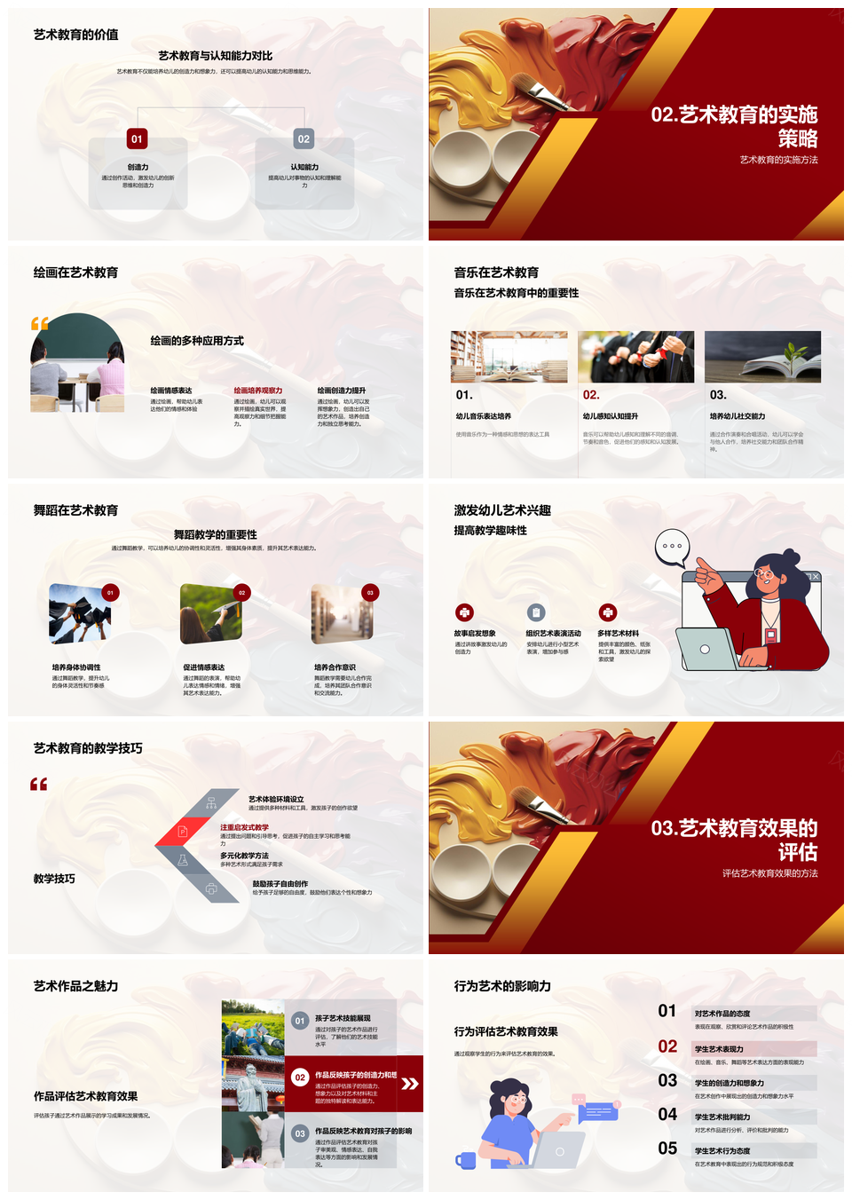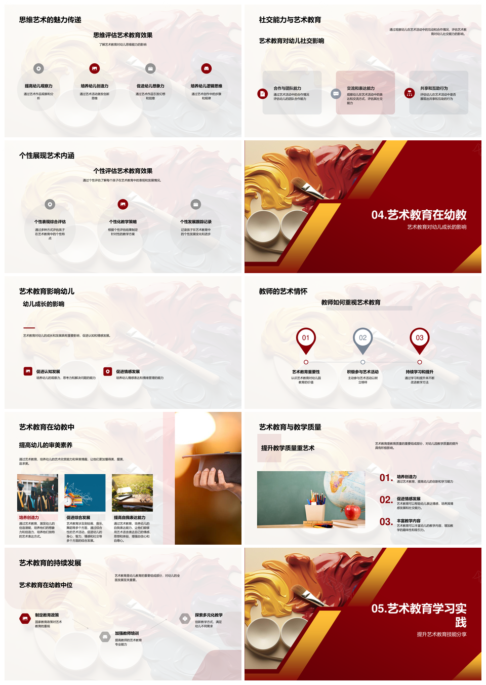 幼儿艺术教育绘画音乐舞蹈效果评估画笔调色板PPT模板推荐