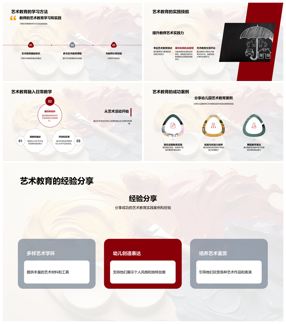 幼儿艺术教育手工绘画音乐舞蹈全面发展PPT模板