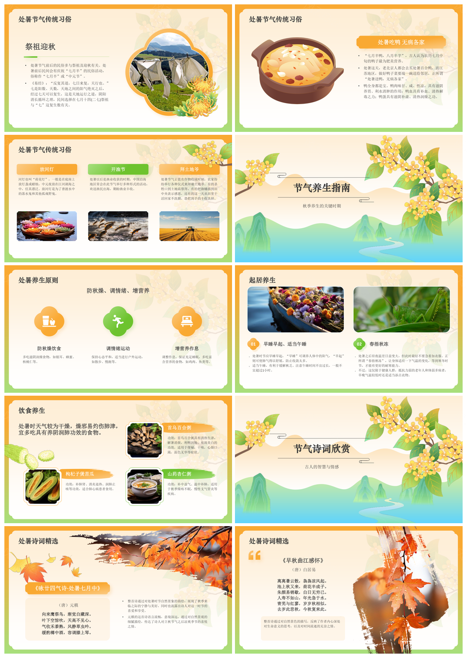 2025处暑二十四节气秋季气象健康作息习俗科普PPT模板推荐