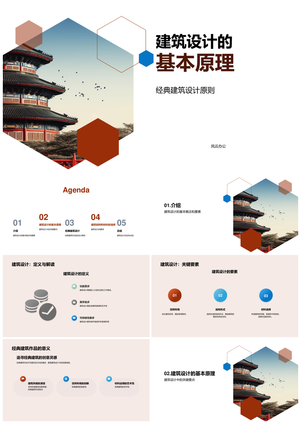 这是一张经典建筑设计原理与要素解析PPT模板,包含经典建筑、设计原理、要素解析等主题内容,也可用作经典建筑设计原理、建筑设计原理要素、设计原理要素解析、经典建筑设计、建筑设计原理、设计原理要素、经典建筑要素、建筑要素解析、经典建筑、建筑设计、设计原理、原理要素、要素解析、经典设计、建筑原理等PPT场景使用。 风云办公提供的经典建筑设计原理与要素解析PPT模板,下载格式为pptx,一共23页,作品中文字及图均可以修改和编辑,图片更改请在作品中右键图片并更换,文字修改请直接点击文字进行修改。