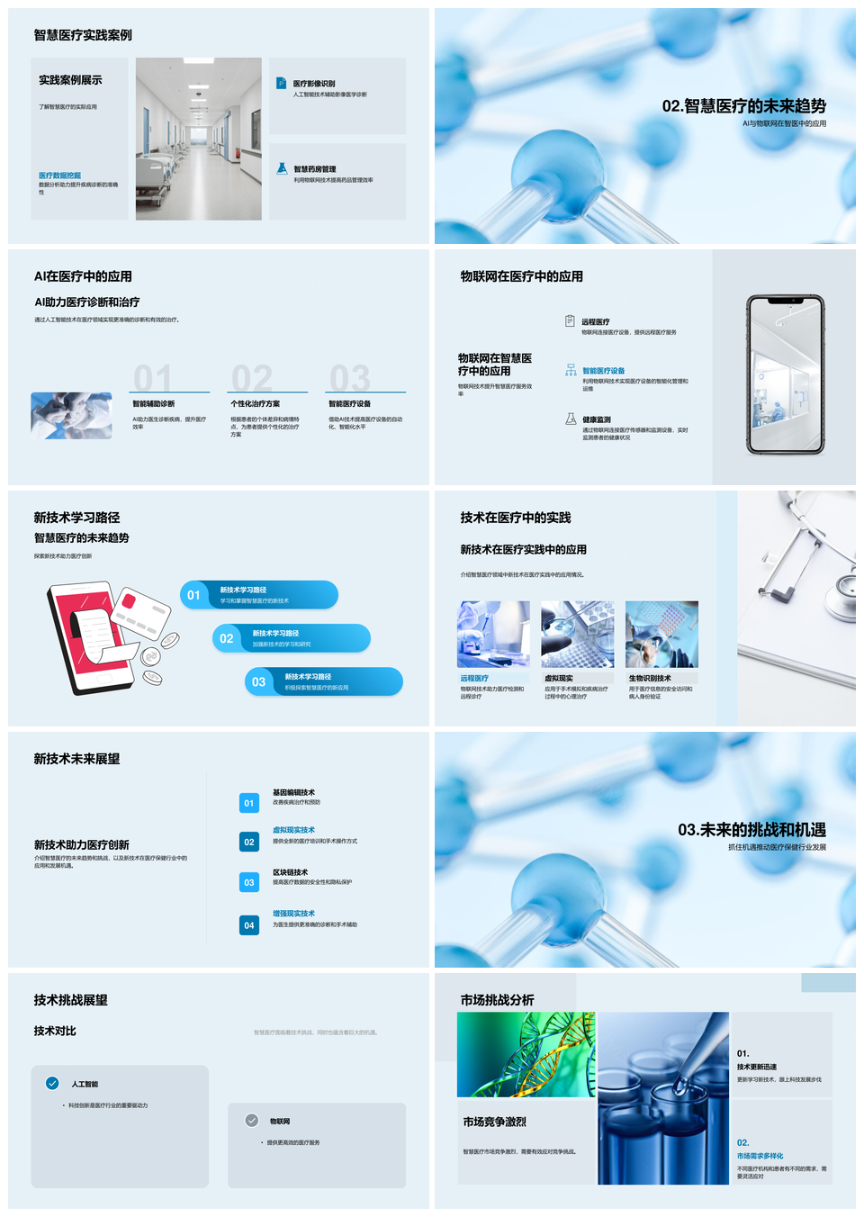 这是一张智慧医疗未来探索创新驱动人工智能物联网PPT模板,包含智慧医疗、未来、探索、创新、驱动、人工智能、物联网等主题内容,也可用作智慧医疗未来探索创新驱动、智慧医疗未来探索人工智能、智慧医疗未来探索物联网、未来探索创新驱动人工智能、未来探索创新驱动物联网、未来探索人工智能物联网、创新驱动人工智能物联网、智慧医疗未来创新驱动、智慧医疗未来人工智能、智慧医疗未来物联网、智慧医疗探索创新驱动、智慧医疗探索人工智能、智慧医疗探索物联网、智慧医疗创新驱动人工智能、智慧医疗创新驱动物联网等PPT场景使用。 风云办公提供的智慧医疗未来探索创新驱动人工智能物联网PPT模板,下载格式为pptx,一共33页,作品中文字及图均可以修改和编辑,图片更改请在作品中右键图片并更换,文字修改请直接点击文字进行修改。