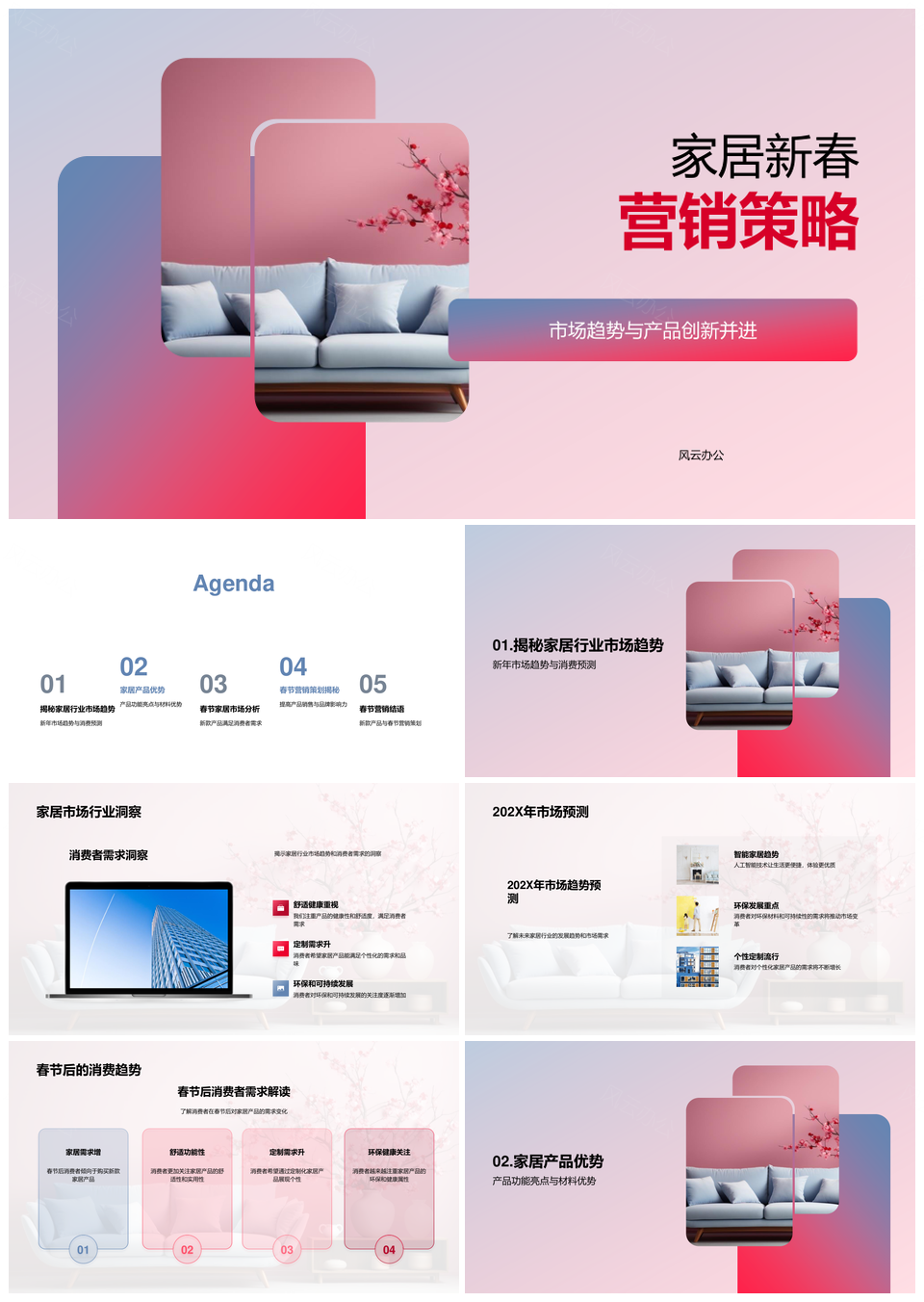风云办公提供的家居春节营销趋势创新产品策略PPT模板,下载格式为pptx,一共23页,作品中文字及图均可以修改和编辑,图片更改请在作品中右键图片并更换,文字修改请直接点击文字进行修改。