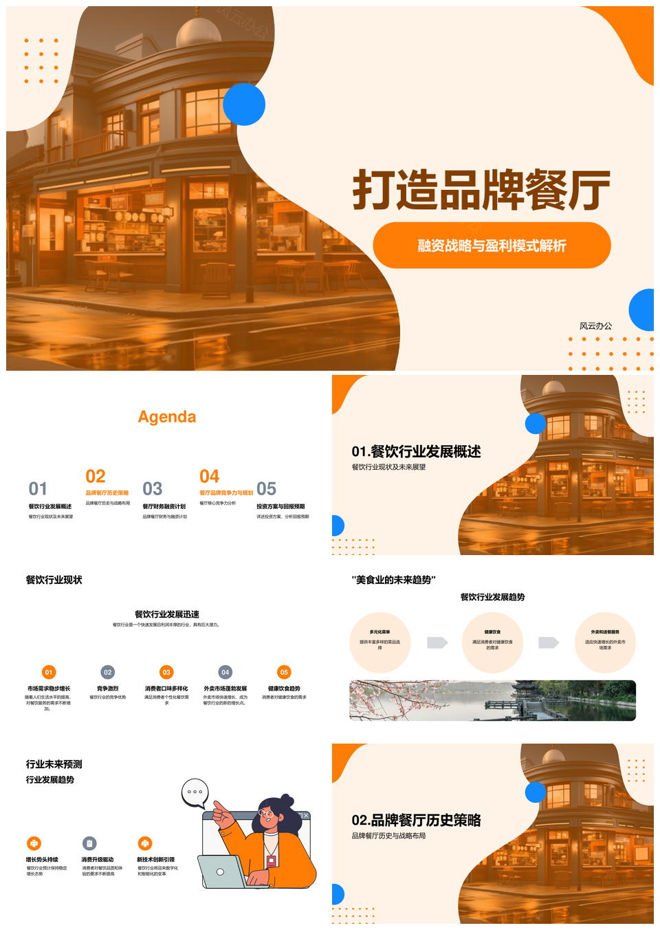 品牌餐厅融资战略盈利模式趋势定位竞争力建筑PPT模板推荐