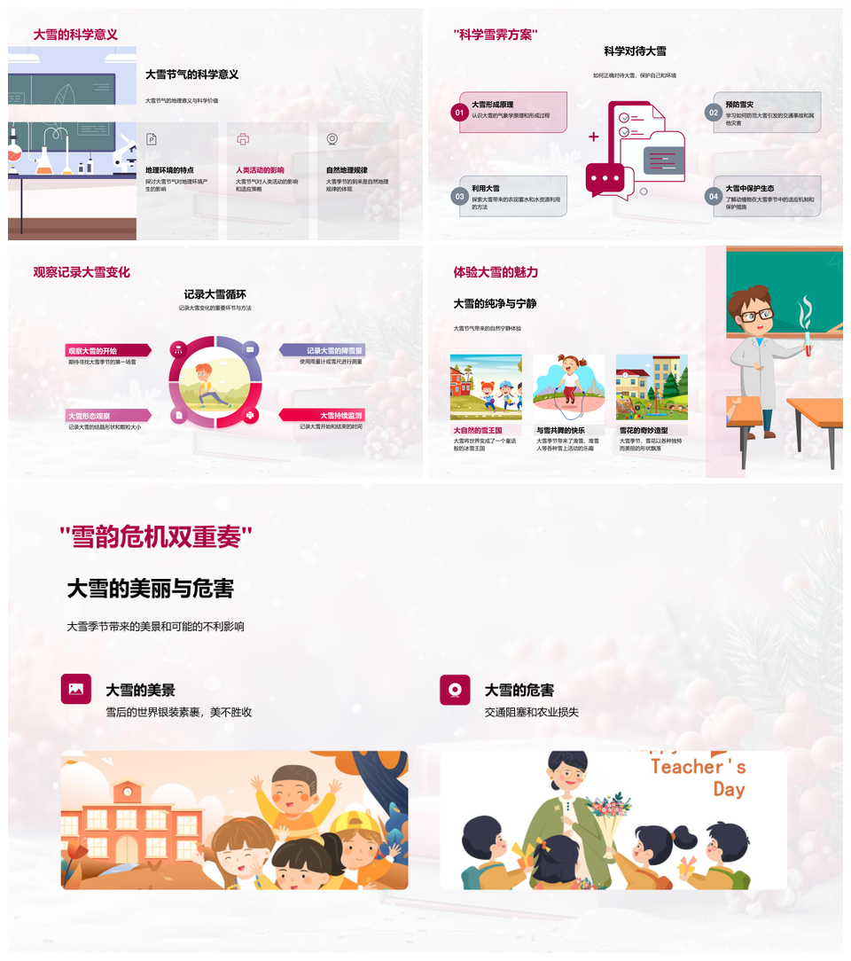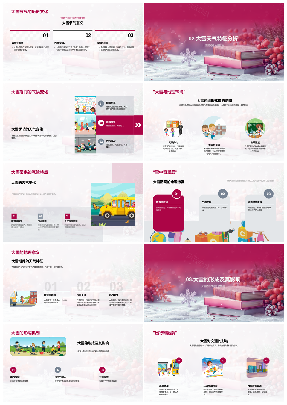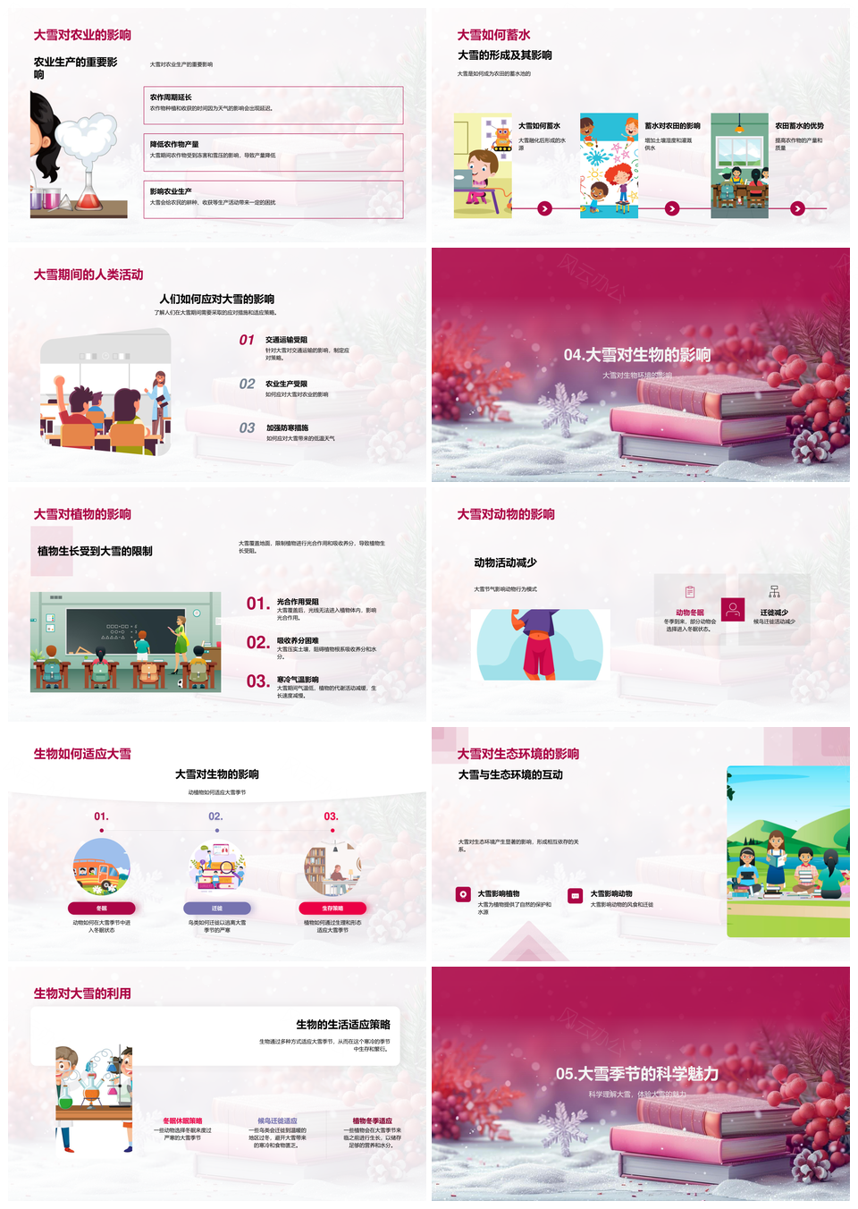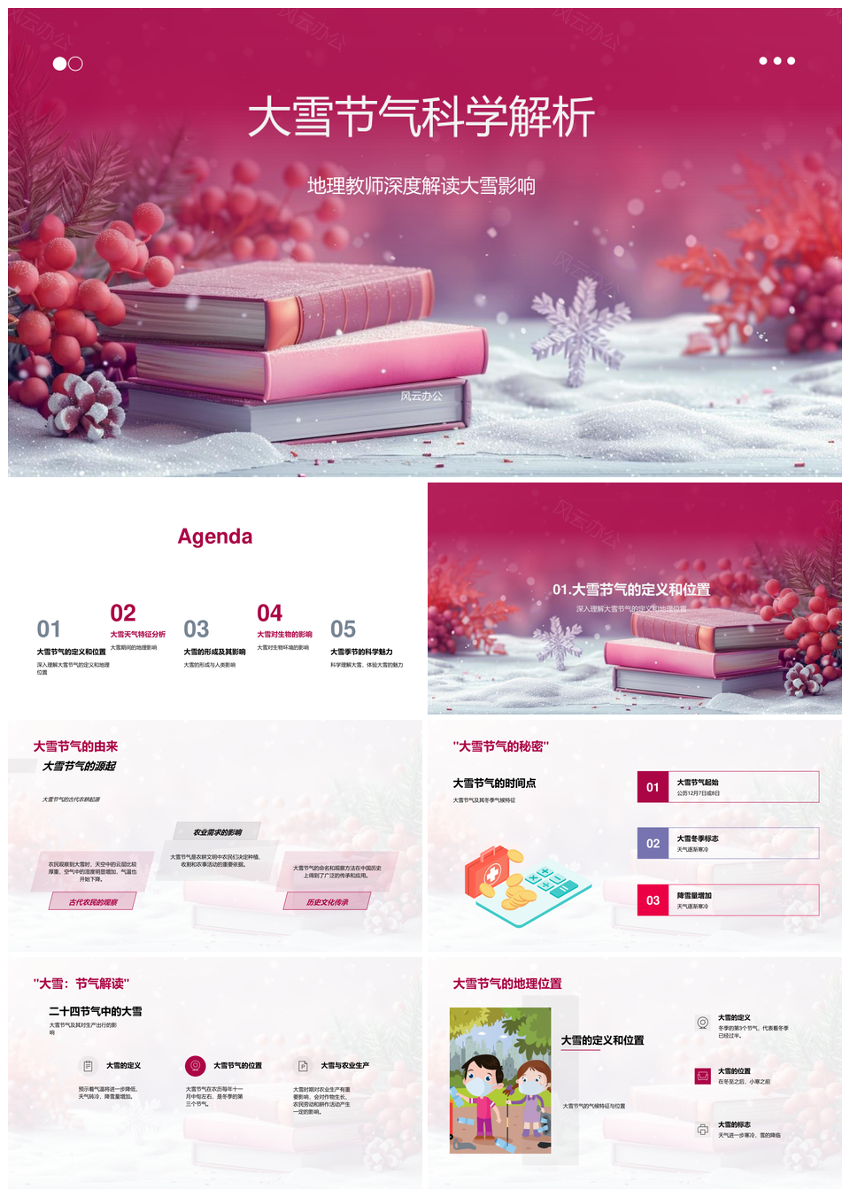 2025大雪节气成因地理环境天气交通农业影响PPT模板推荐