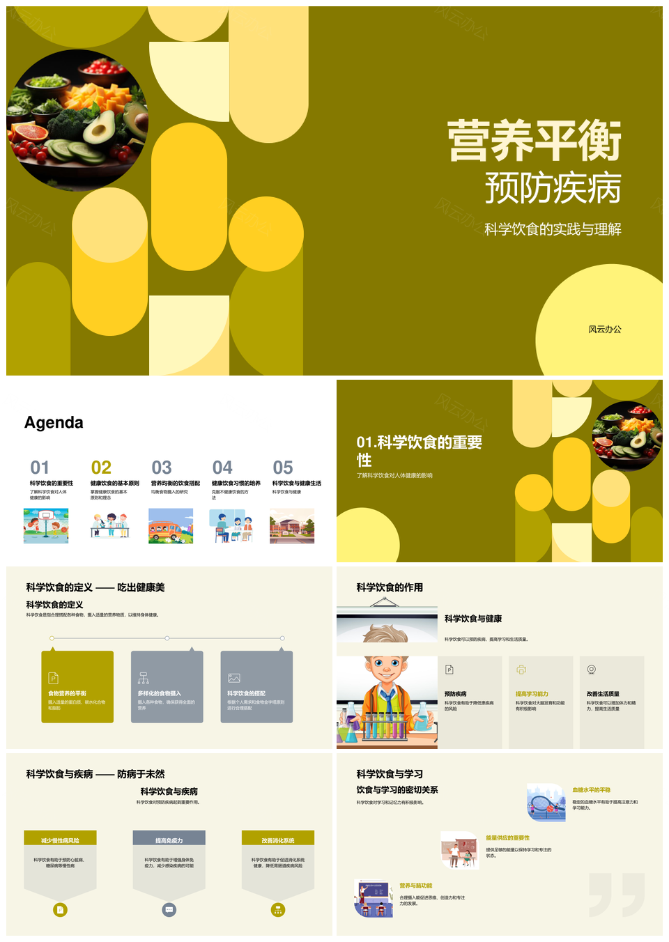 风云办公提供的科学饮食营养平衡预防疾病PPT模板,下载格式为pptx,一共33页,作品中文字及图均可以修改和编辑,图片更改请在作品中右键图片并更换,文字修改请直接点击文字进行修改。