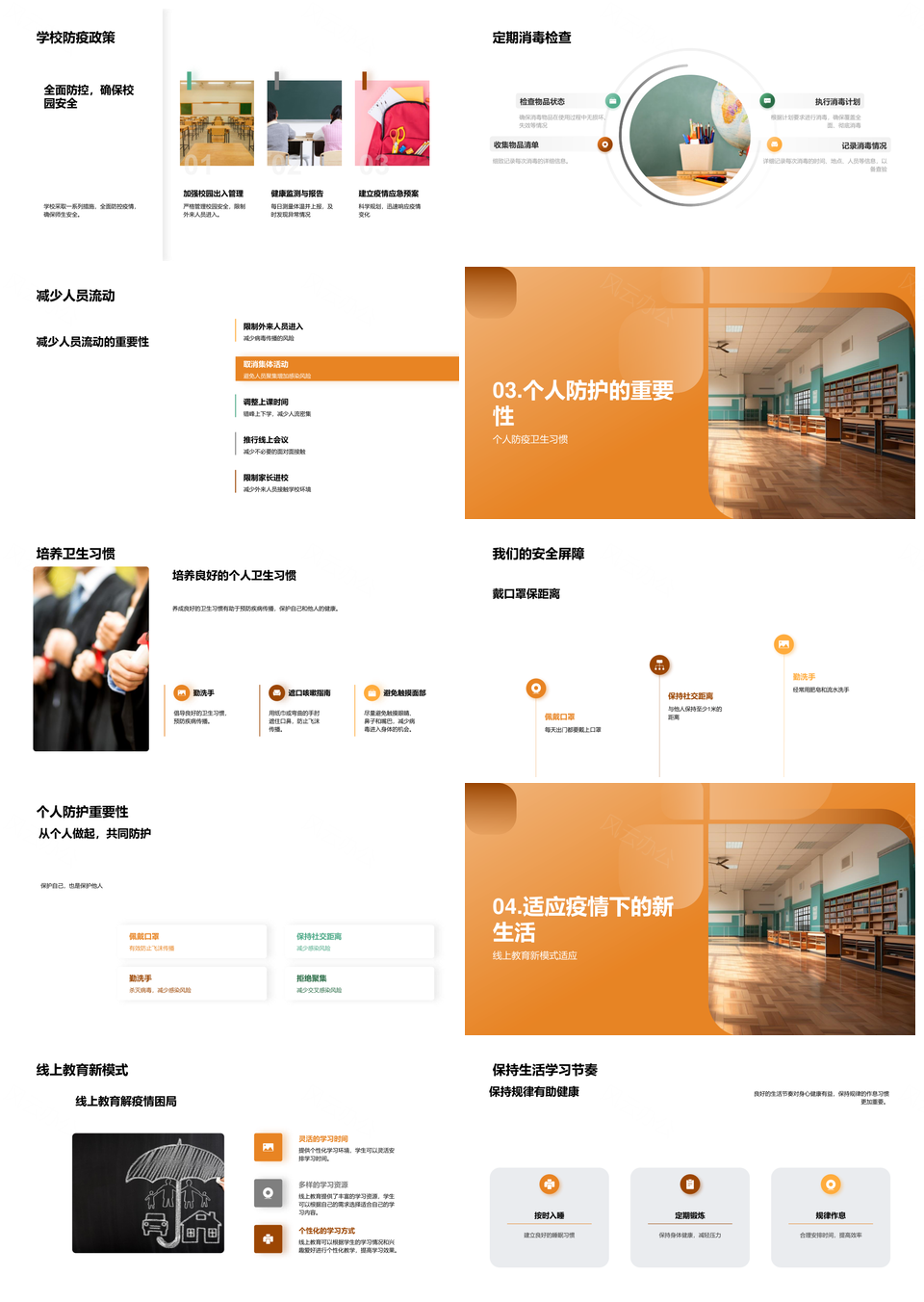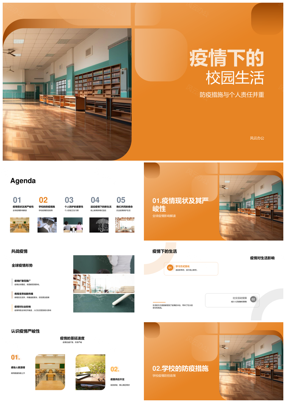 风云办公提供的全球疫情下校园防疫责任与建筑生活PPT模板,下载格式为pptx,一共23页,作品中文字及图均可以修改和编辑,图片更改请在作品中右键图片并更换,文字修改请直接点击文字进行修改。