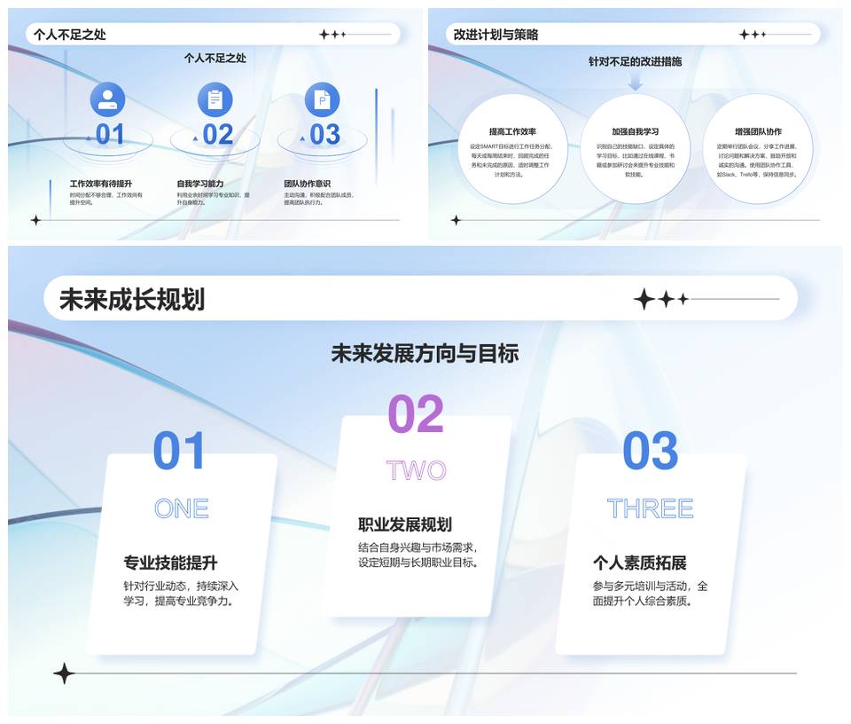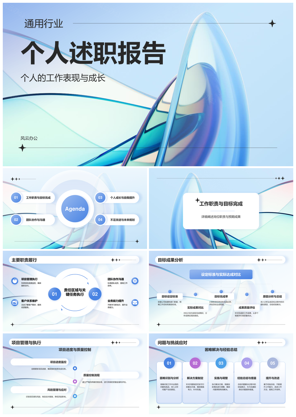 渐变风行业通用述职工作成果职责目标团队成长PPT模板推荐