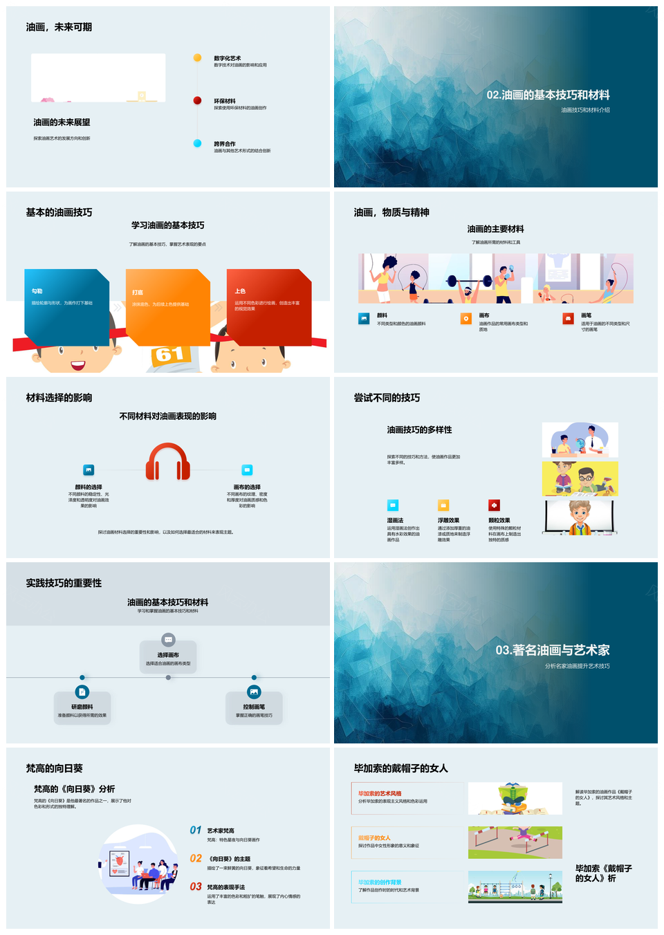 大学油画艺术教学起源发展技巧教授培训PPT模板推荐