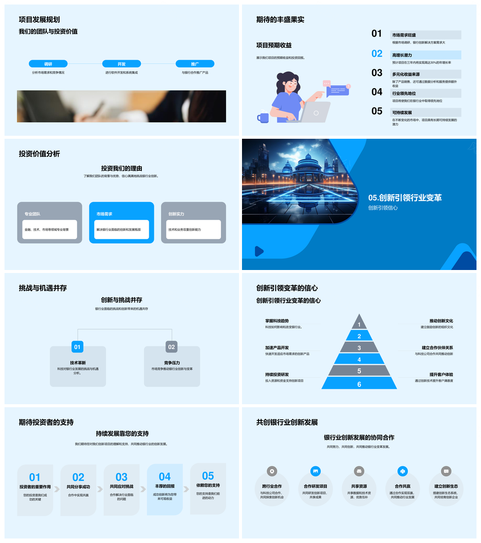 这是一张银行业创新科技助力大数据AI创投新趋势PPT模板,包含银行业、创新科技、助力、大数据、AI、创投、新趋势等主题内容,也可用作银行业创新科技助力大数据AI创投、银行业创新科技助力大数据、创新科技助力大数据AI、科技助力大数据AI创投、银行业创新科技创投、大数据AI创投新趋势、创新科技助力新趋势、银行业大数据AI创投、科技助力AI创投、银行业创新科技、大数据AI新趋势、创新科技创投、银行业科技助力、AI创投新趋势、科技大数据创投等PPT场景使用。 风云办公提供的银行业创新科技助力大数据AI创投新趋势PPT模板,下载格式为pptx,一共26页,作品中文字及图均可以修改和编辑,图片更改请在作品中右键图片并更换,文字修改请直接点击文字进行修改。