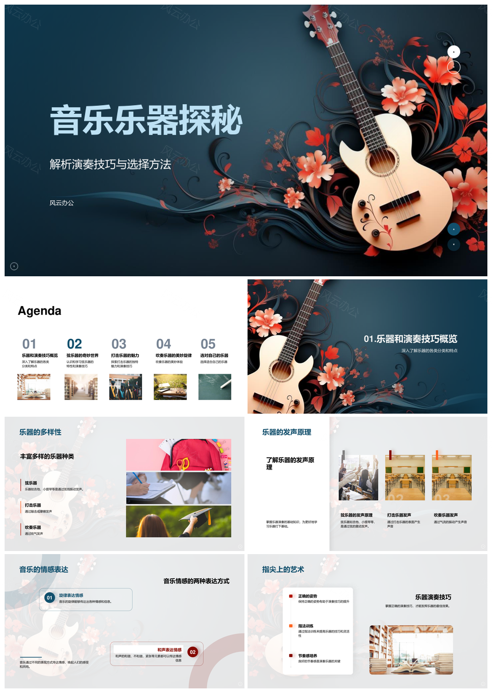 风云办公提供的音乐乐器分类演奏技巧选择与情感表达PPT模板,下载格式为pptx,一共28页,作品中文字及图均可以修改和编辑,图片更改请在作品中右键图片并更换,文字修改请直接点击文字进行修改。