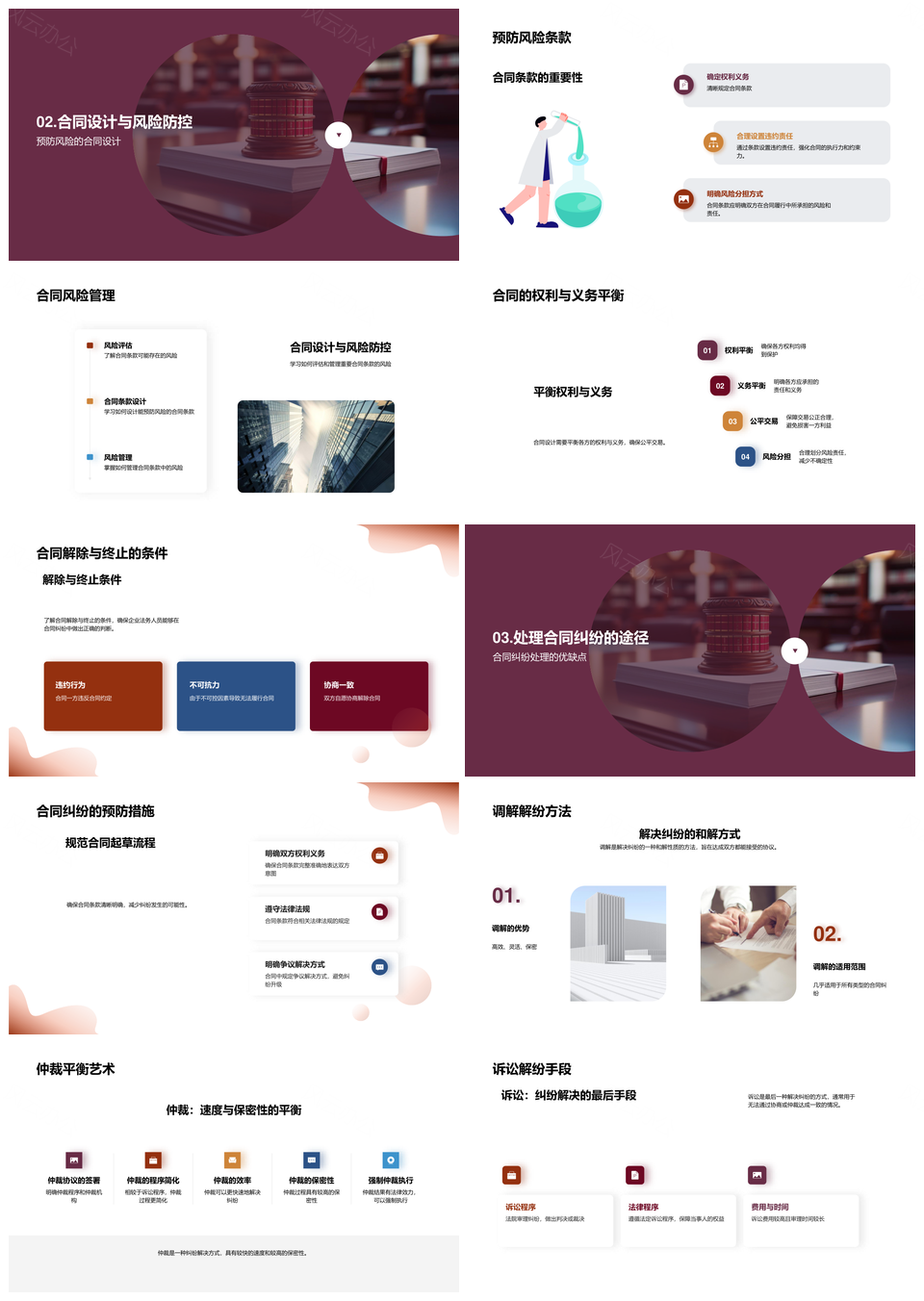 这是一张合同法风险管理条款纠纷法务培训仲裁解析PPT模板,包含合同法、风险管理、条款、纠纷、法务、培训、仲裁、解析等主题内容,也可用作合同法风险管理条款纠纷、风险管理条款纠纷法务培训、条款纠纷法务培训仲裁、纠纷法务培训仲裁解析、法务培训仲裁解析、合同法条款纠纷仲裁、风险管理纠纷法务培训、条款法务培训仲裁解析、纠纷仲裁解析、合同法风险管理法务培训、风险管理条款法务培训、条款纠纷仲裁解析、法务培训仲裁、纠纷法务培训仲裁、仲裁解析等PPT场景使用。 风云办公提供的合同法风险管理条款纠纷法务培训仲裁解析PPT模板,下载格式为pptx,一共26页,作品中文字及图均可以修改和编辑,图片更改请在作品中右键图片并更换,文字修改请直接点击文字进行修改。