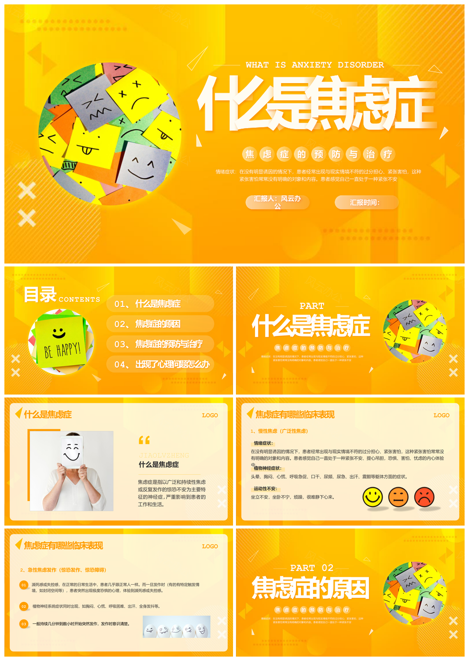 黄色简约焦虑症科普预防治疗心理护理主题班会PPT模板推荐