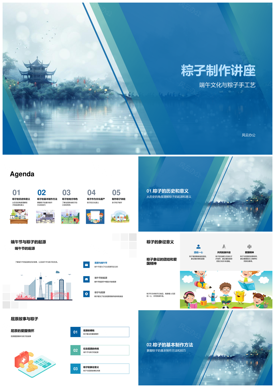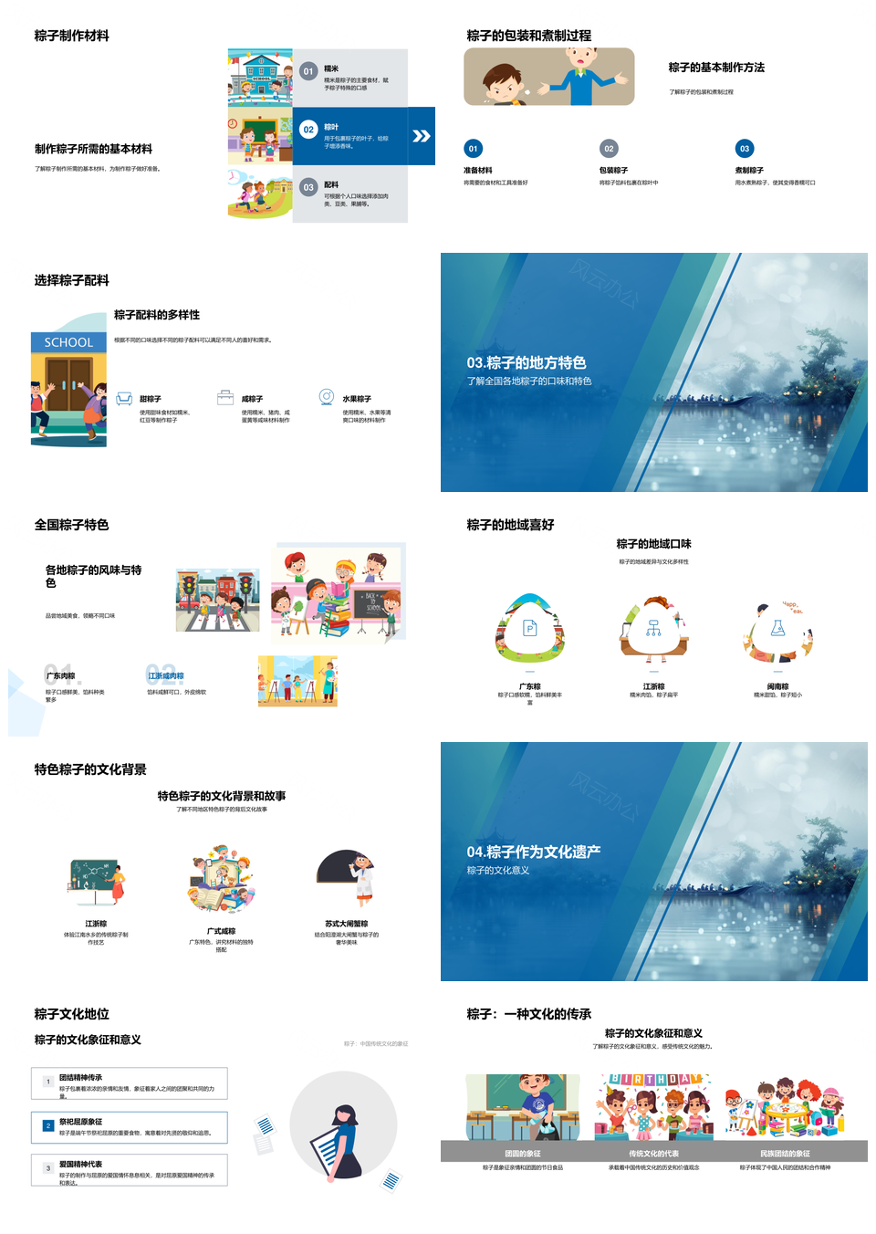 端午屈原粽材料包装煮制配料地方特色PPT模板推荐
