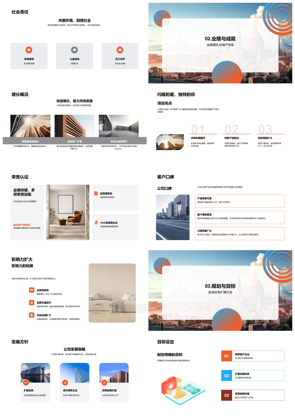 风云办公提供的地产雄心筑梦全球业绩增长PPT模板,下载格式为pptx,一共33页,作品中文字及图均可以修改和编辑,图片更改请在作品中右键图片并更换,文字修改请直接点击文字进行修改。