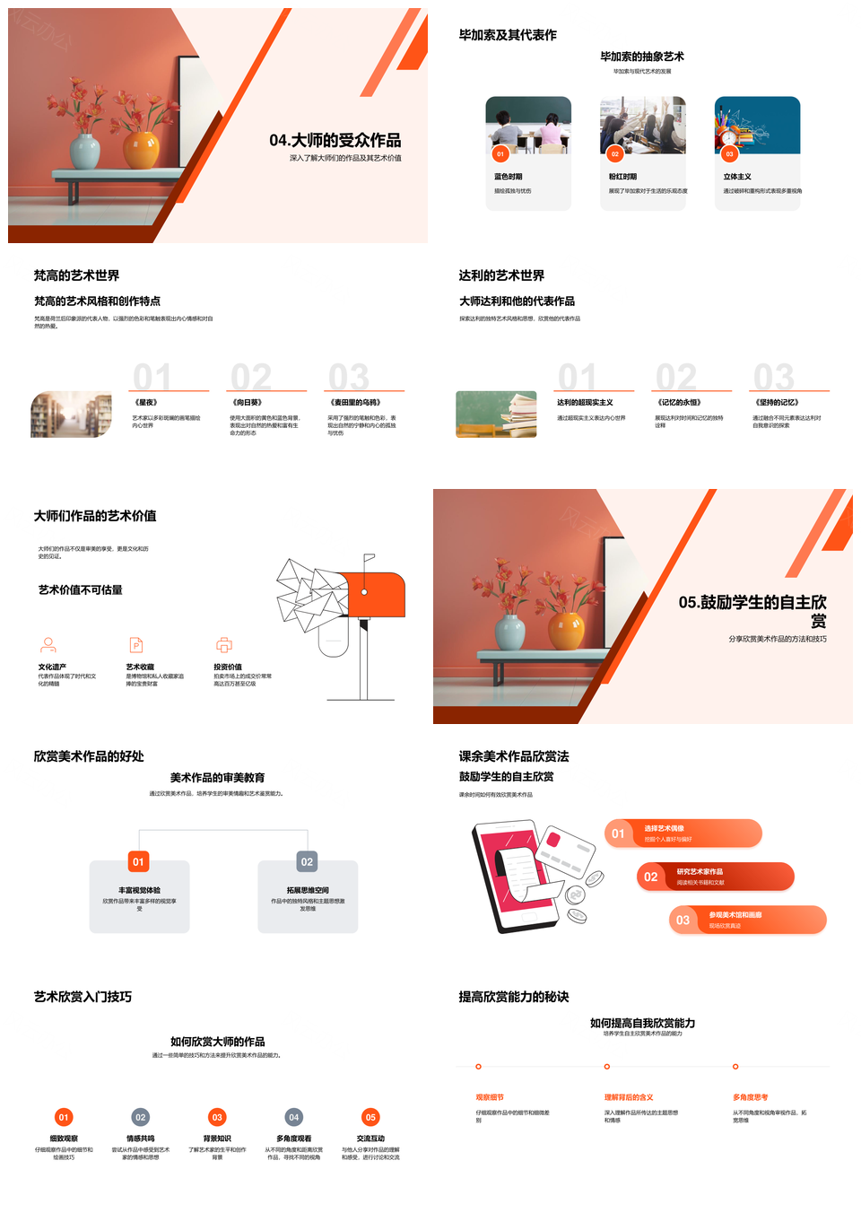 这是一张美术大师艺术成就风格思想审美影响PPT模板,包含美术大师、艺术成就、风格、思想、审美、影响等主题内容,也可用作美术大师艺术成就风格思想、艺术成就风格思想审美影响、美术大师艺术成就风格、美术大师艺术成就思想、艺术成就风格思想、风格思想审美影响、美术大师风格思想、艺术成就思想审美影响、美术大师艺术成就、艺术成就风格、艺术成就思想、艺术成就审美影响、风格思想、思想审美影响、美术大师审美影响等PPT场景使用。