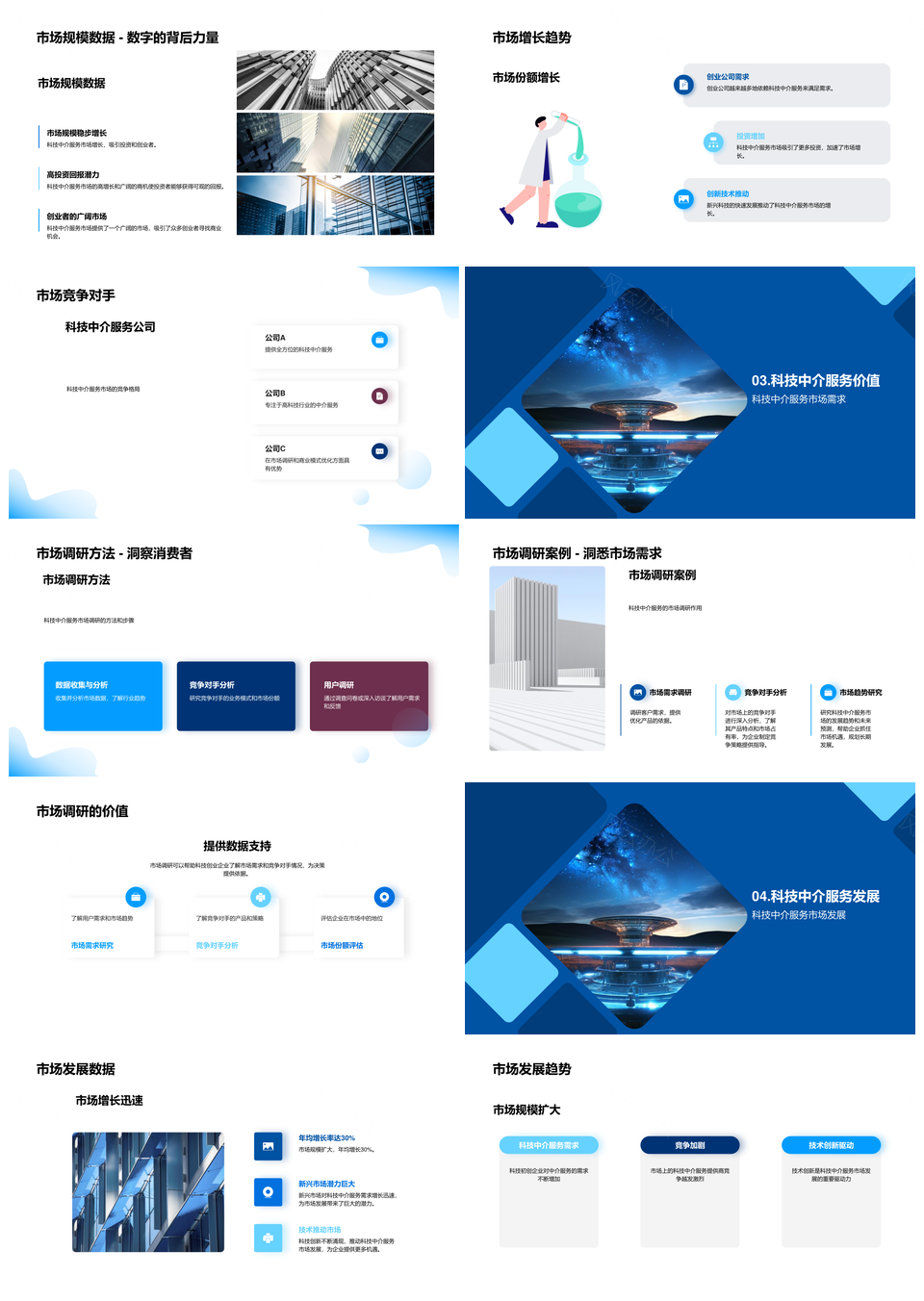 风云办公提供的科技中介服务驱动创新科技创业发展PPT模板,下载格式为pptx,一共23页,作品中文字及图均可以修改和编辑,图片更改请在作品中右键图片并更换,文字修改请直接点击文字进行修改。