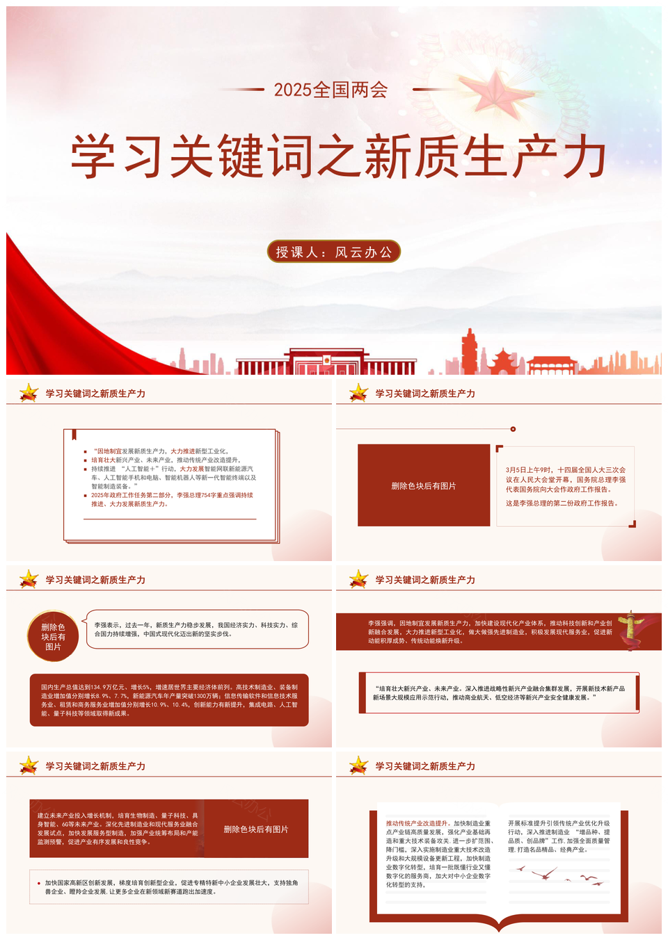 2025教学课件红色聚焦两会政府工作报告PPT模板