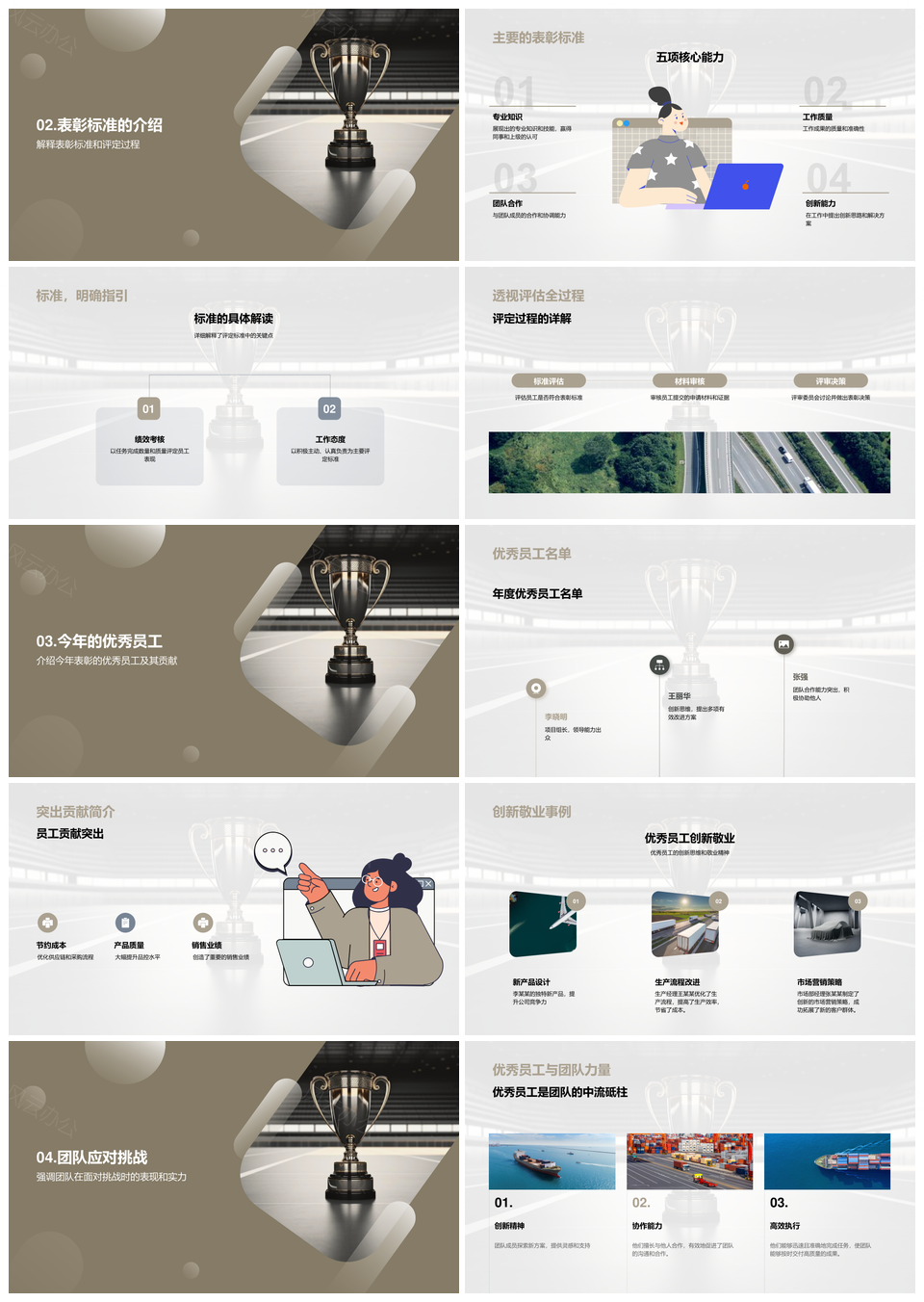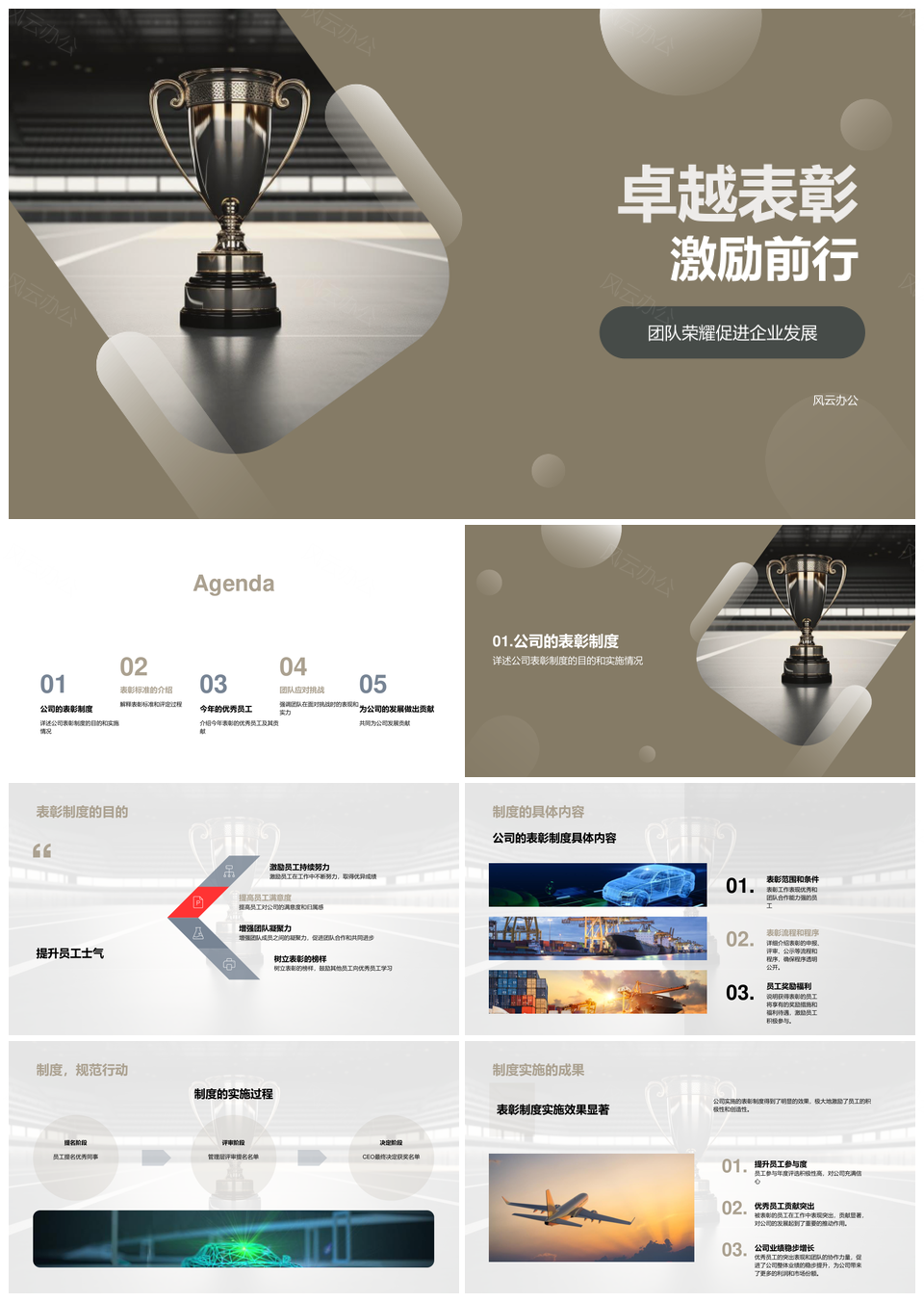 风云办公提供的卓越表彰年度优秀员工团队荣耀奋进PPT模板,下载格式为pptx,一共24页,作品中文字及图均可以修改和编辑,图片更改请在作品中右键图片并更换,文字修改请直接点击文字进行修改。