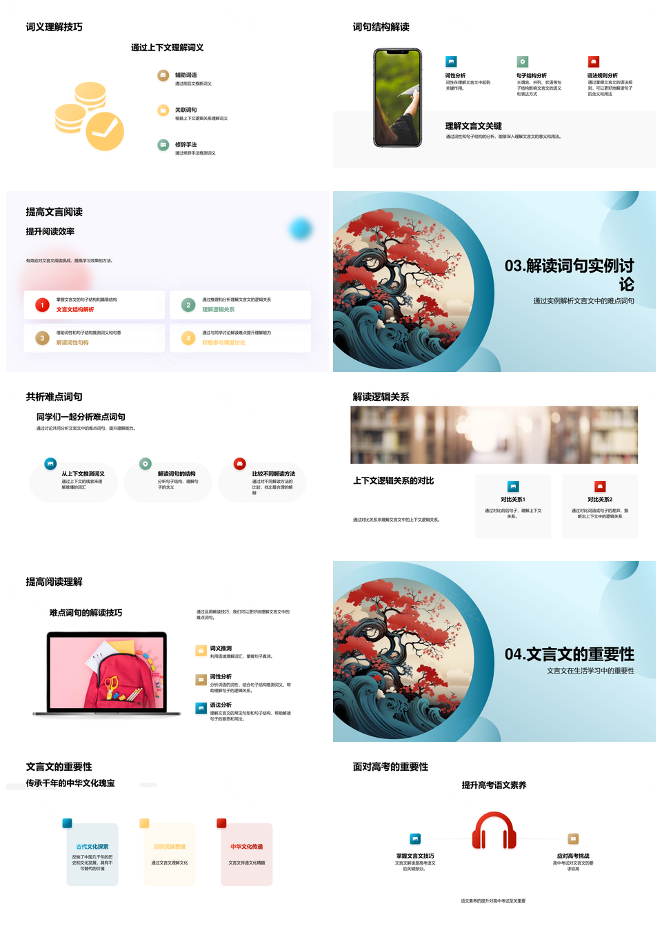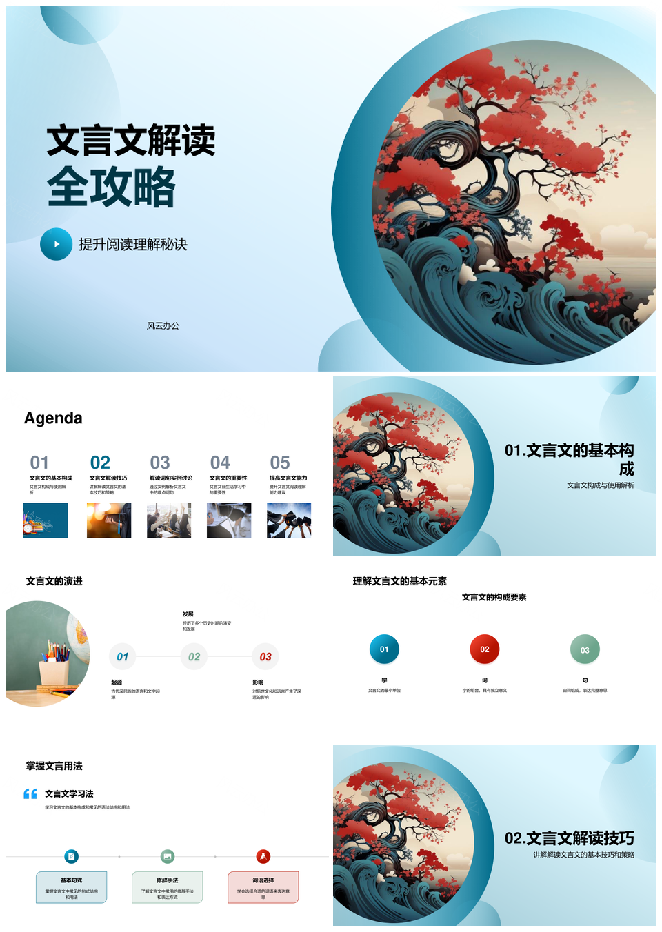 风云办公提供的古文解读秘诀上下文词义卷轴攻略PPT模板,下载格式为pptx,一共23页,作品中文字及图均可以修改和编辑,图片更改请在作品中右键图片并更换,文字修改请直接点击文字进行修改。