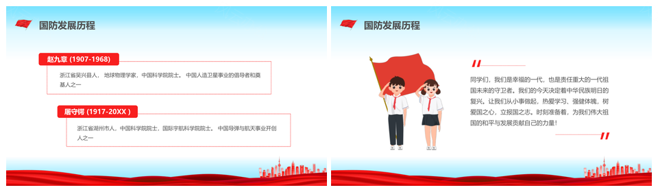 风云办公提供的小学生红色清新国防教育主题班会PPT模板,下载格式为pptx,一共20页,作品中文字及图均可以修改和编辑,图片更改请在作品中右键图片并更换,文字修改请直接点击文字进行修改。