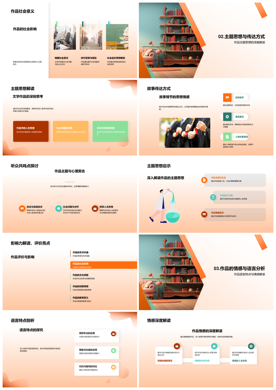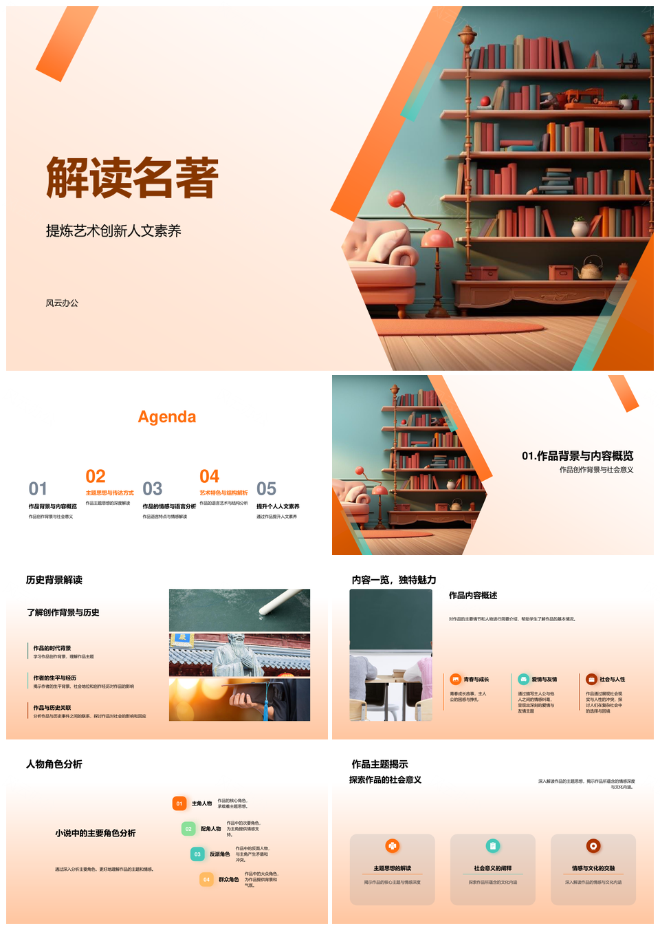 风云办公提供的经典名著艺术创新与人文主题解析PPT模板,下载格式为pptx,一共33页,作品中文字及图均可以修改和编辑,图片更改请在作品中右键图片并更换,文字修改请直接点击文字进行修改。