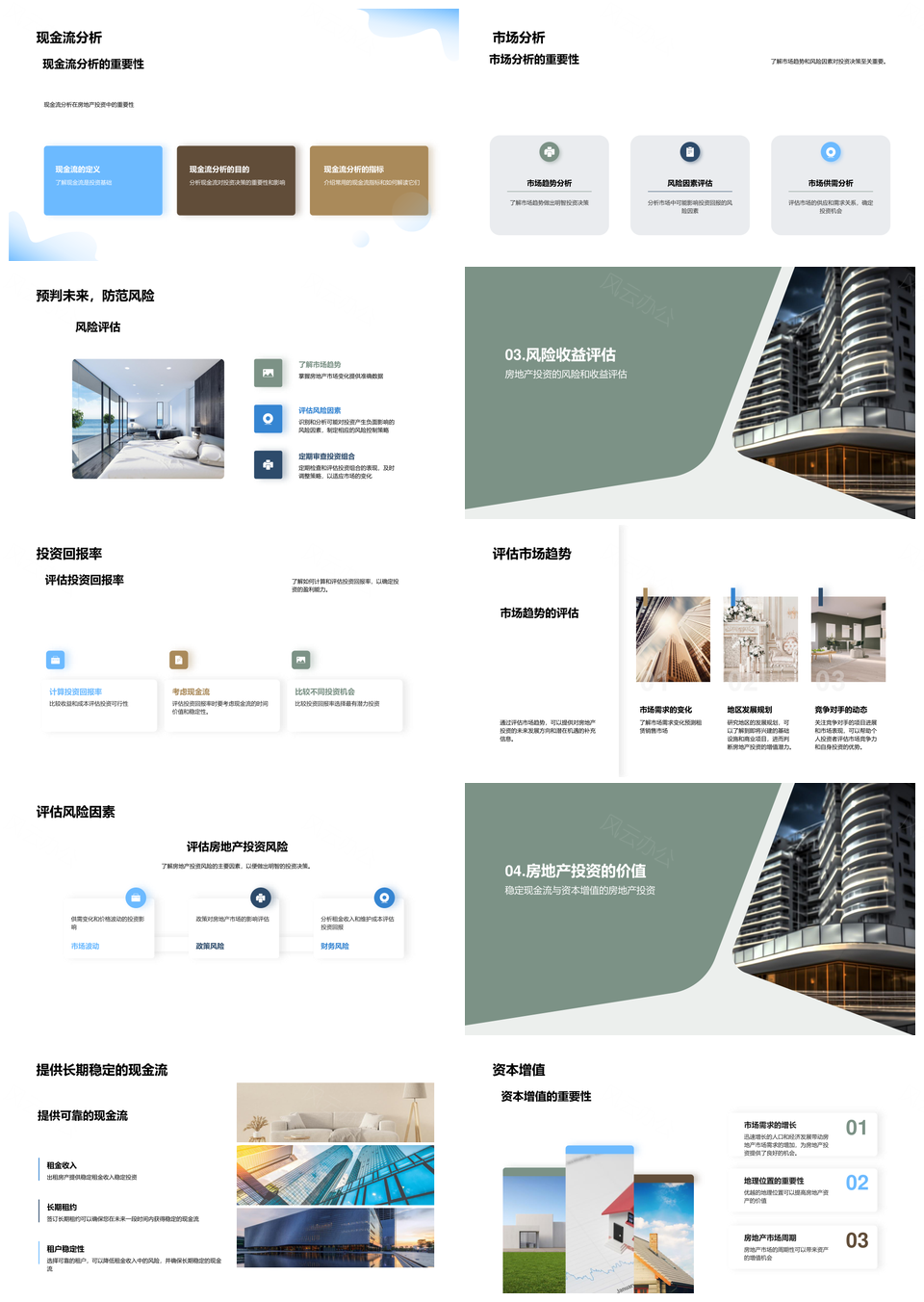 这是一张个人投资者房地产风险回报现金流市场趋势分析PPT模板,包含个人投资者、房地产、风险、回报、现金流、市场、趋势、分析等主题内容,也可用作个人投资者房地产风险回报、房地产风险回报现金流、风险回报现金流市场趋势、回报现金流市场趋势分析、个人投资者房地产风险、房地产风险回报现金、风险回报现金流市场、现金流市场趋势分析、市场趋势分析、风险回报现金流、回报现金流市场、个人投资者房地产、房地产风险回报、风险回报现金、现金流市场趋势等PPT场景使用。 风云办公提供的个人投资者房地产风险回报现金流市场趋势分析PPT模板,下载格式为pptx,一共23页,作品中文字及图均可以修改和编辑,图片更改请在作品中右键图片并更换,文字修改请直接点击文字进行修改。